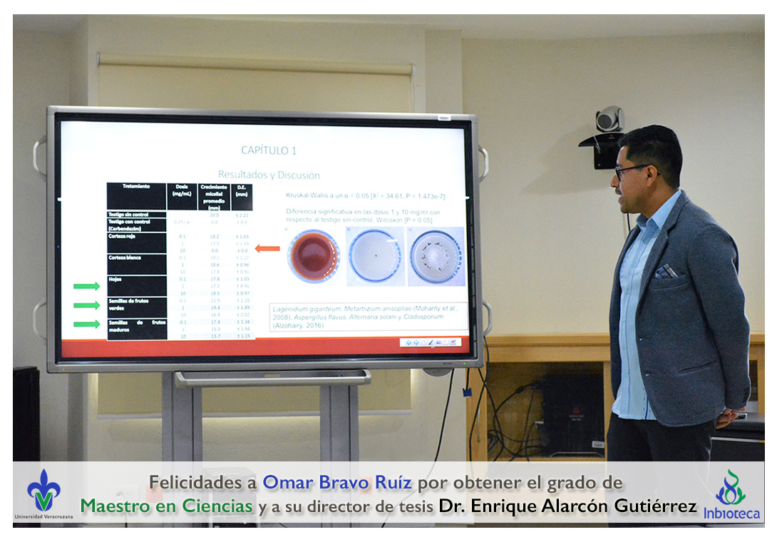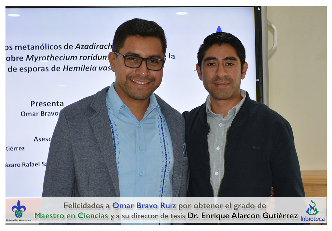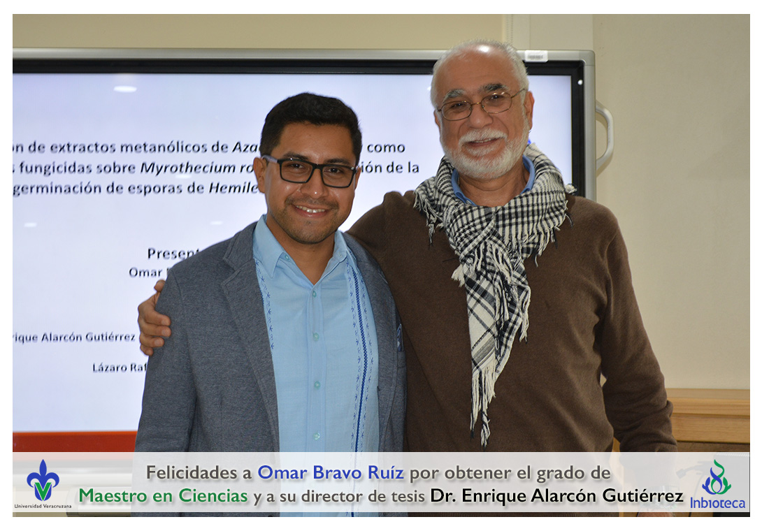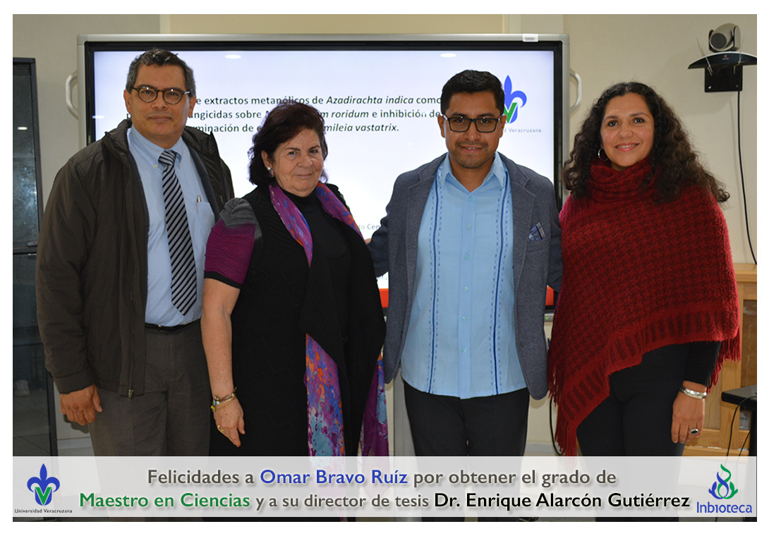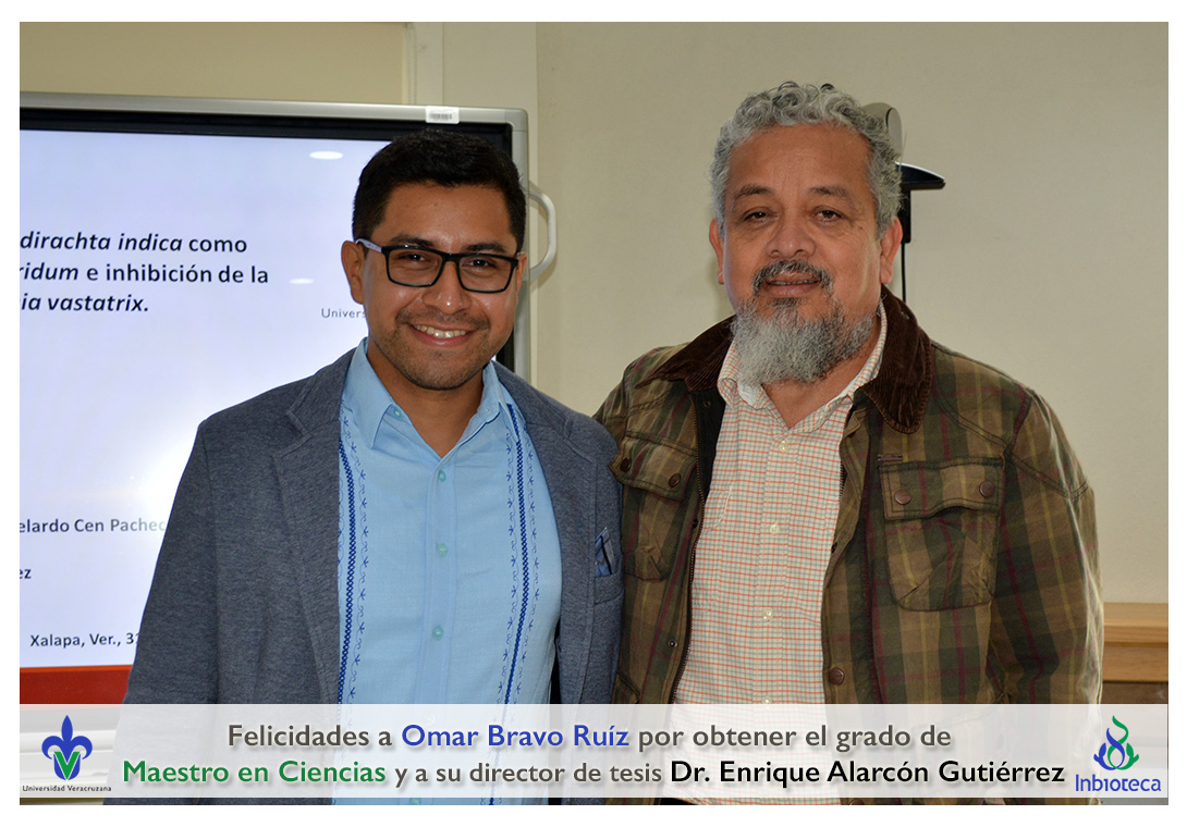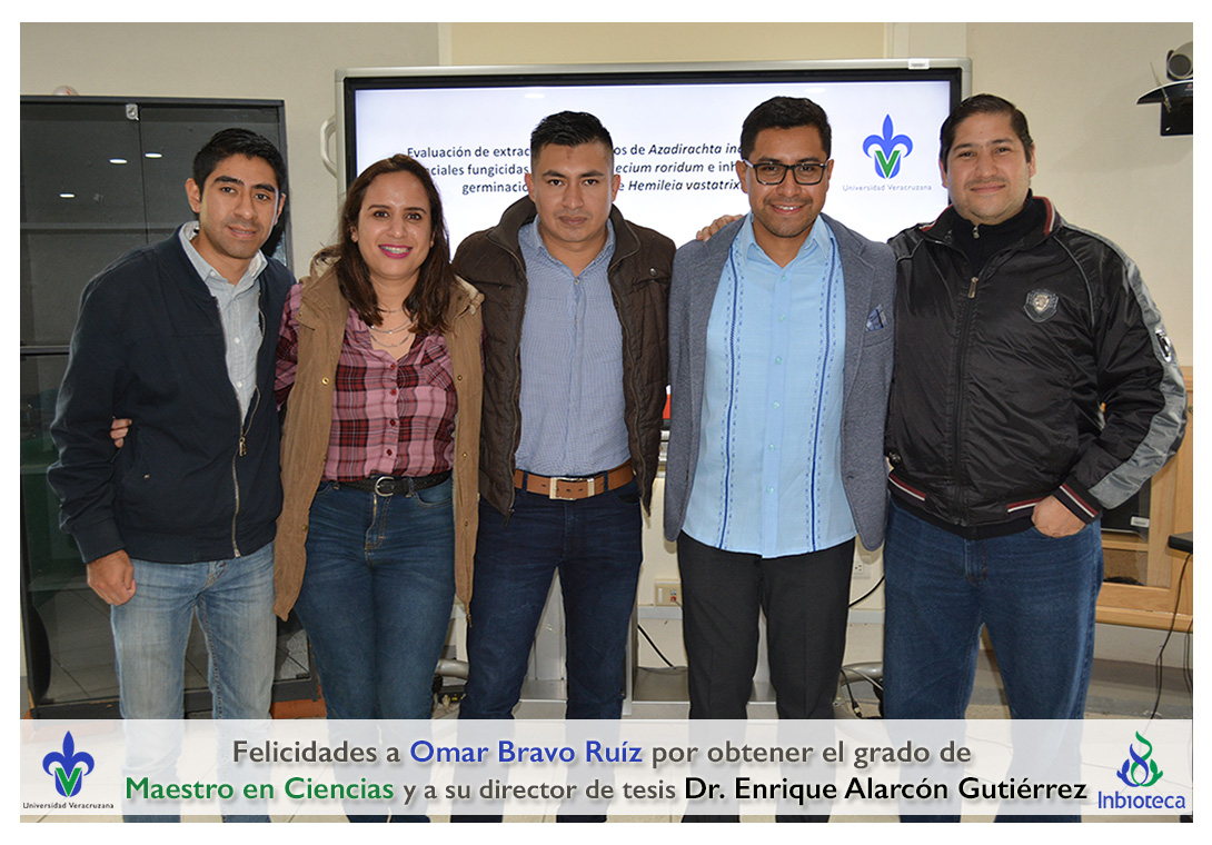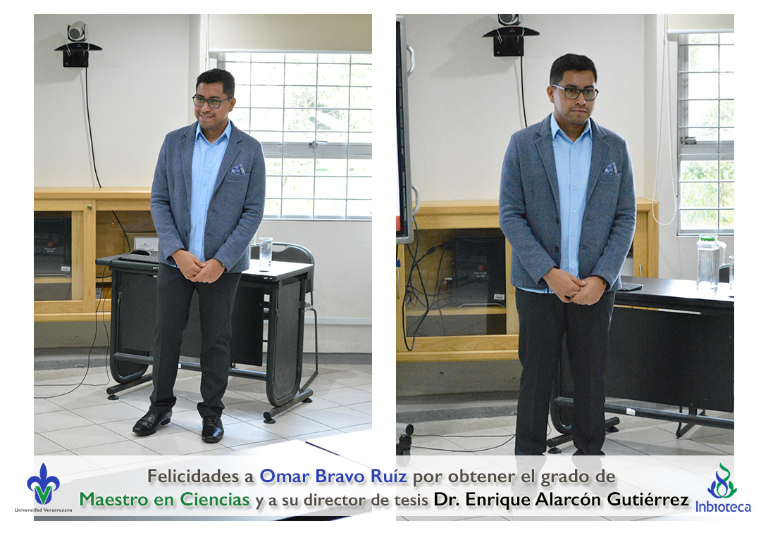 Felicidades a Omar Bravo Ruíz por obtener el grado de Maestro en Ciencias en Ecología y Biotecnología, a su director de tesis Dr. Enrique Alarcón Gutiérrez, a su comité y a todos los que contribuyeron en el trabajo realizado. ¡Enhorabuena!