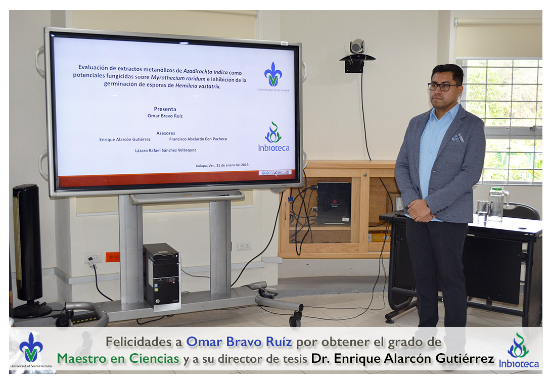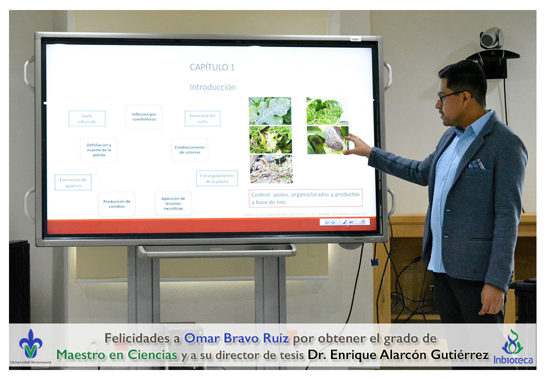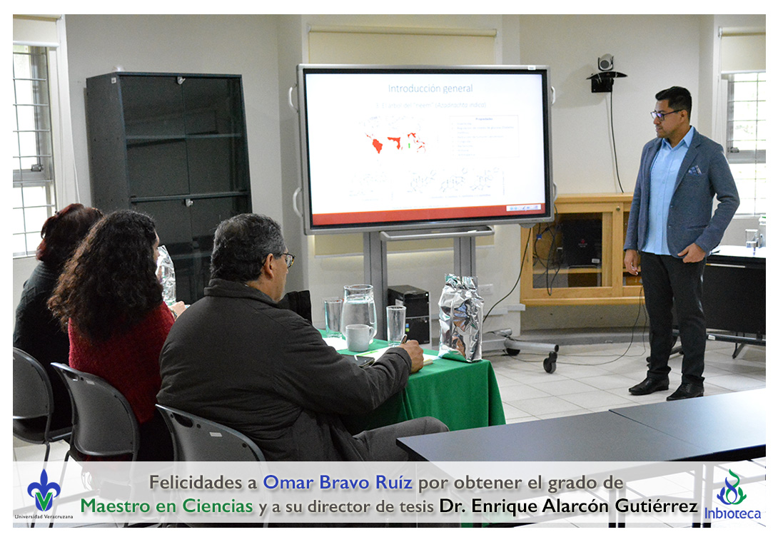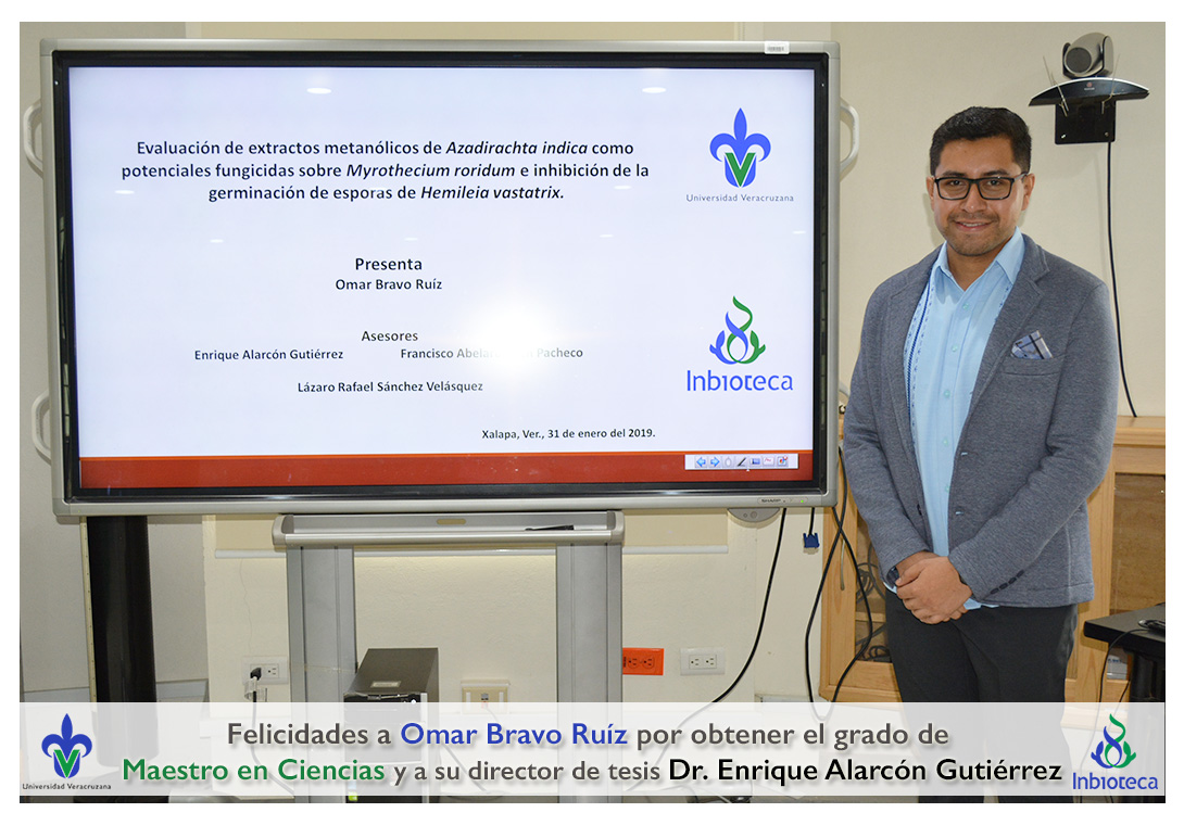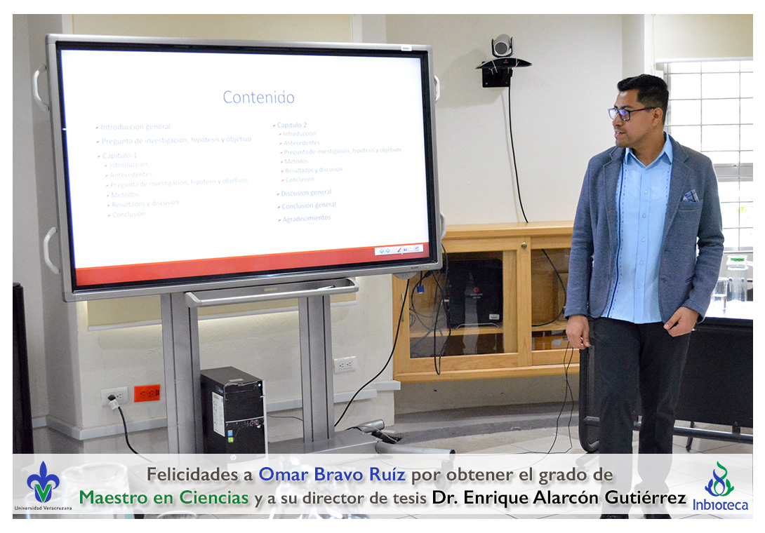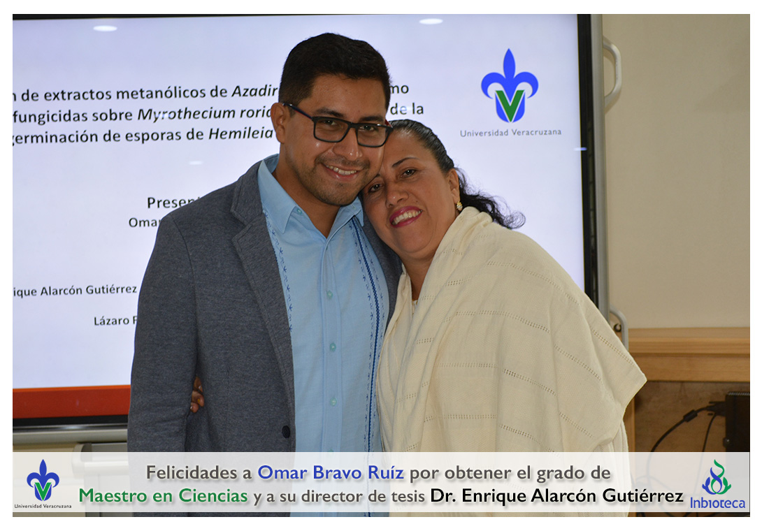 Felicidades a Omar Bravo Ruíz por obtener el grado de Maestro en Ciencias en Ecología y Biotecnología, a su director de tesis Dr. Enrique Alarcón Gutiérrez, a su comité y a todos los que contribuyeron en el trabajo realizado. ¡Enhorabuena!