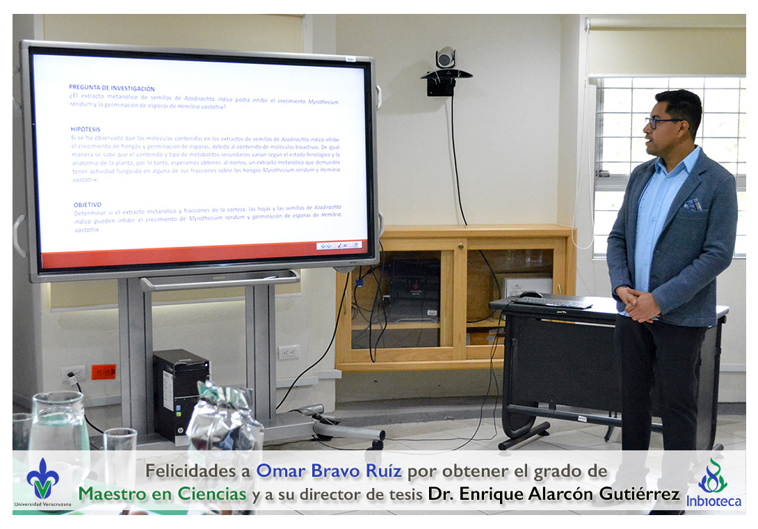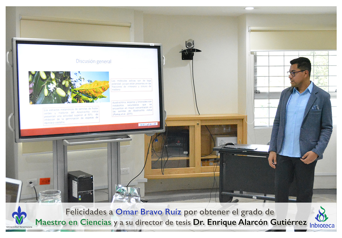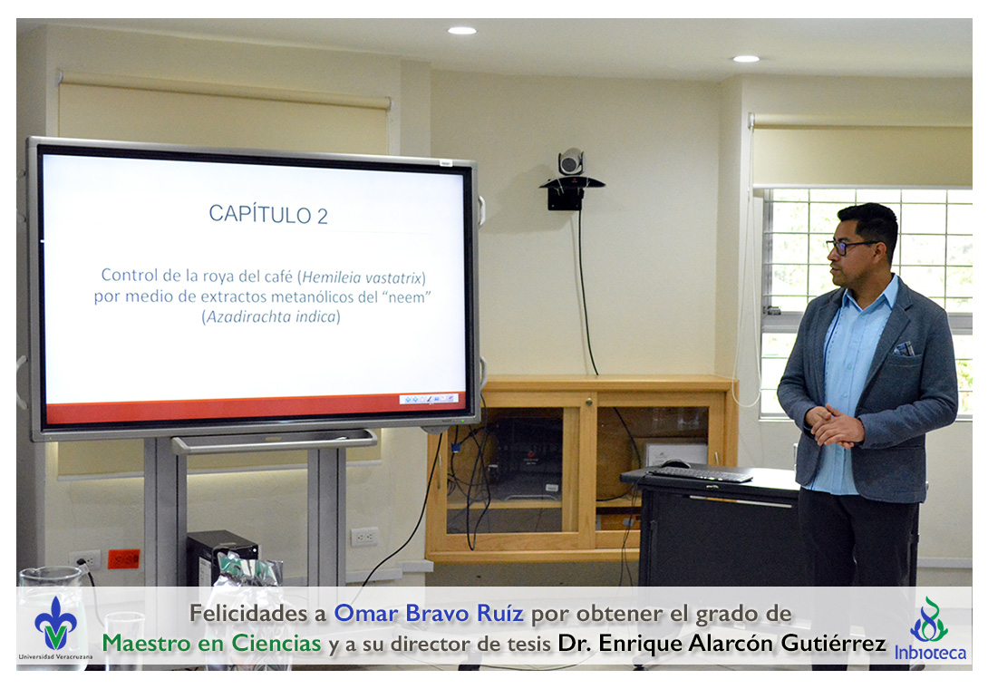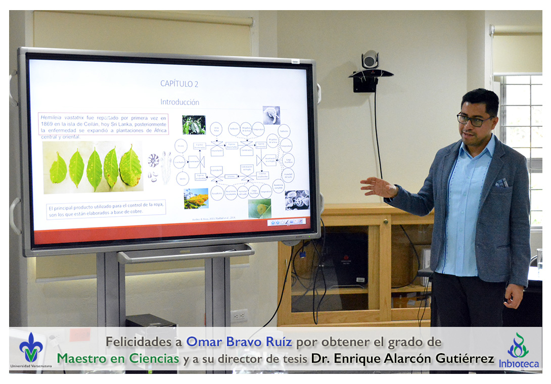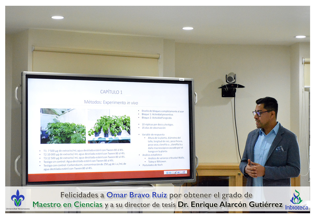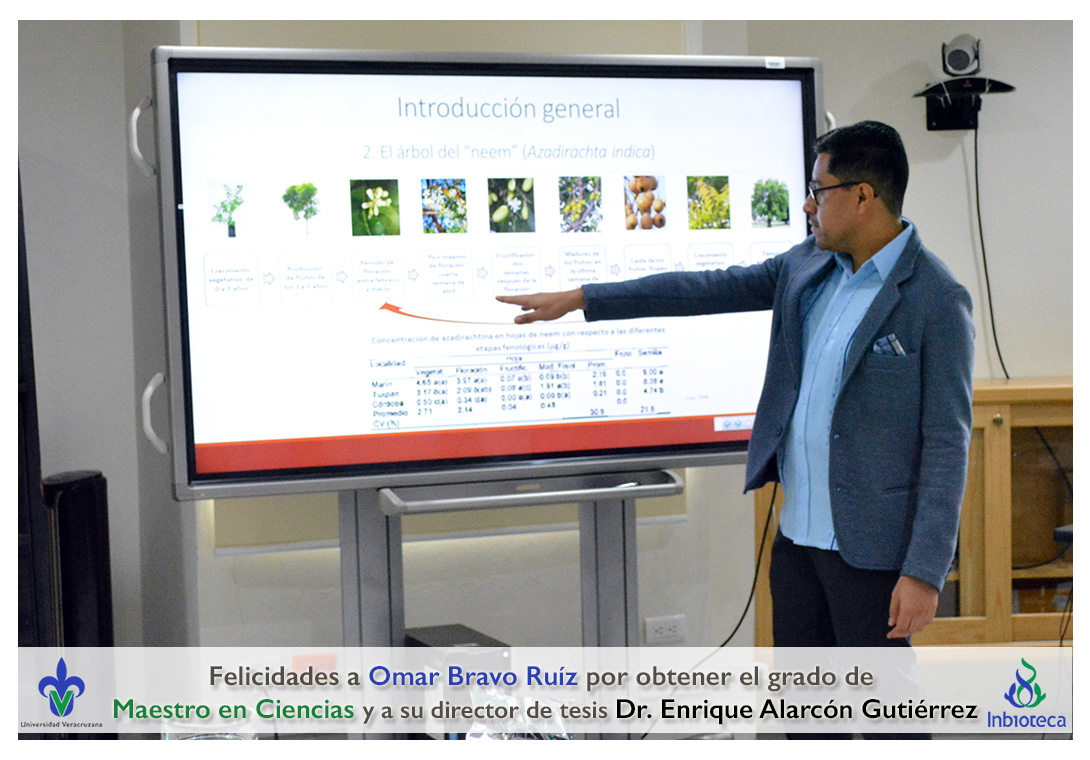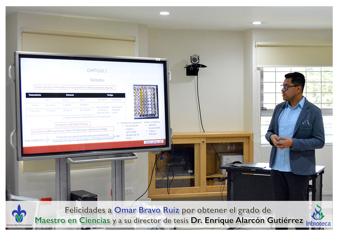 Felicidades a Omar Bravo Ruíz por obtener el grado de Maestro en Ciencias en Ecología y Biotecnología, a su director de tesis Dr. Enrique Alarcón Gutiérrez, a su comité y a todos los que contribuyeron en el trabajo realizado. ¡Enhorabuena!
