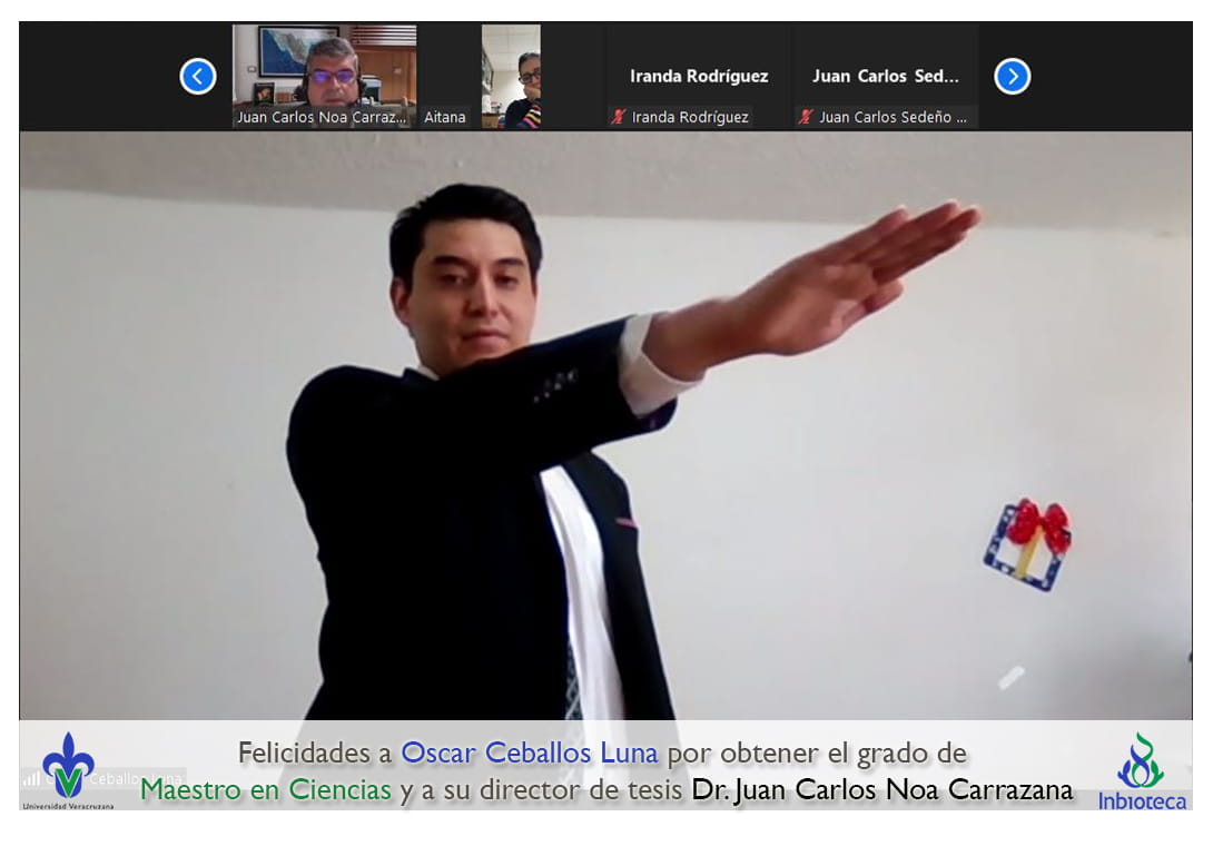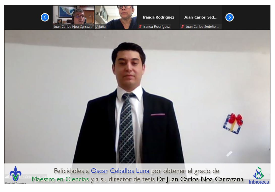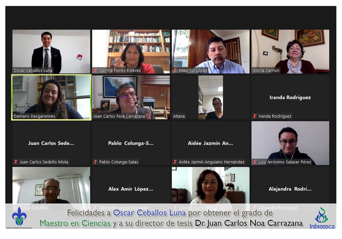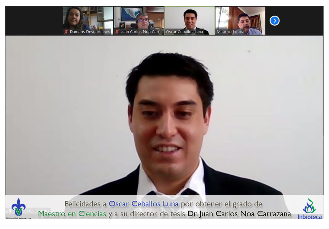 Felicidades a Oscar Ceballos Luna por obtener el grado por Unanimidad de Maestro en Ciencias en Ecología y Biotecnología, a su director de tesis Dr. Juan Carlos Noa Carrazana, a su codirectora de tesis Dra. Damaris Del Carmen Desgarennes Valido, a su comité y a todos los que contribuyeron en el trabajo realizado. ¡Enhorabuena!