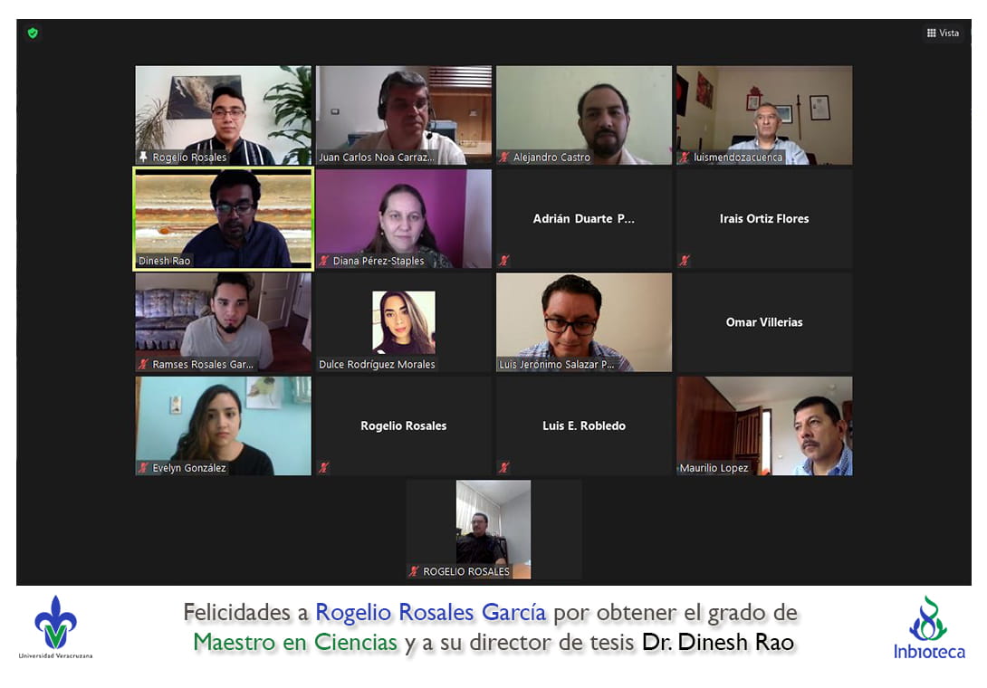 Felicidades a Rogelio Rosales García por obtener el grado de Maestro en Ciencias en Ecología y Biotecnología por Unanimidad con Mención Honorífica, a su director de tesis Dr. V. Dinesh Rao, a su comité y a todos los que contribuyeron en el trabajo realizado. ¡Enhorabuena!