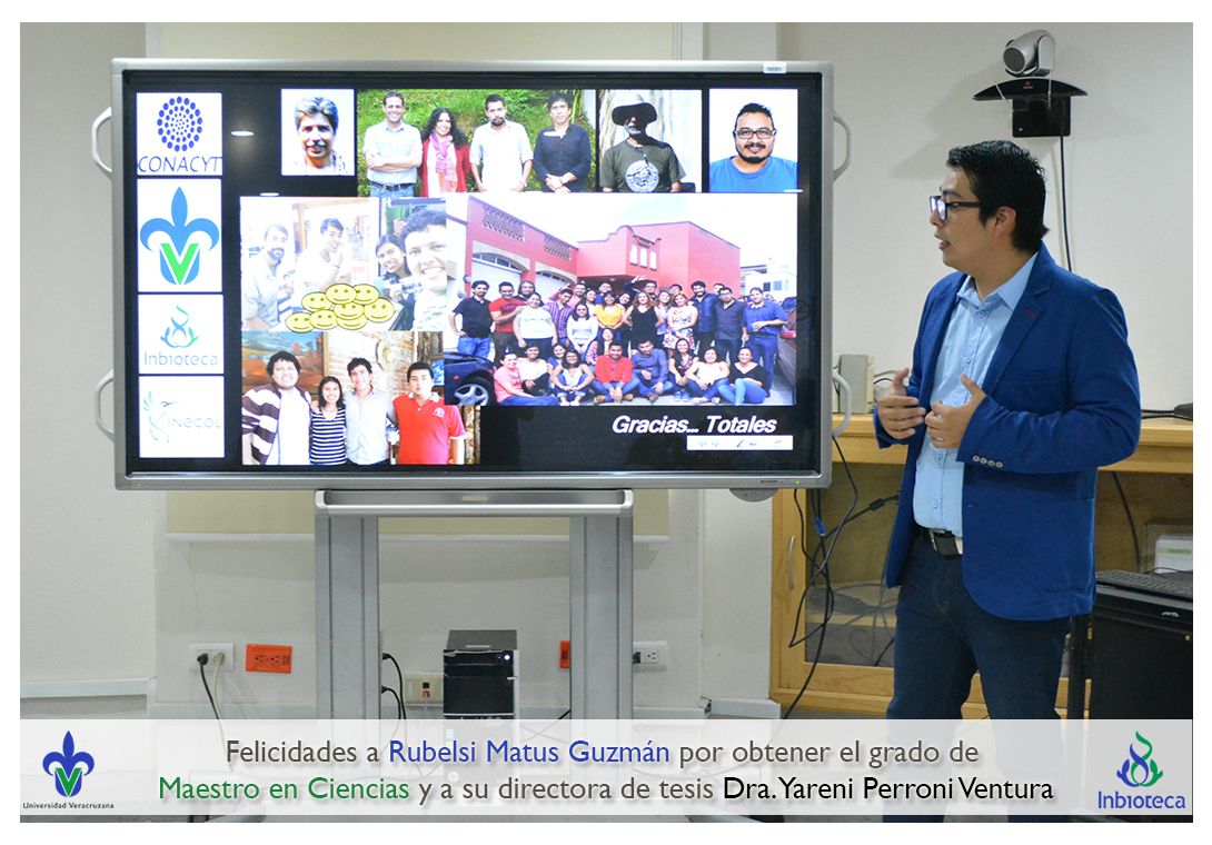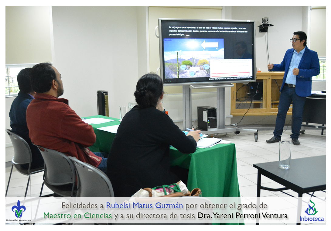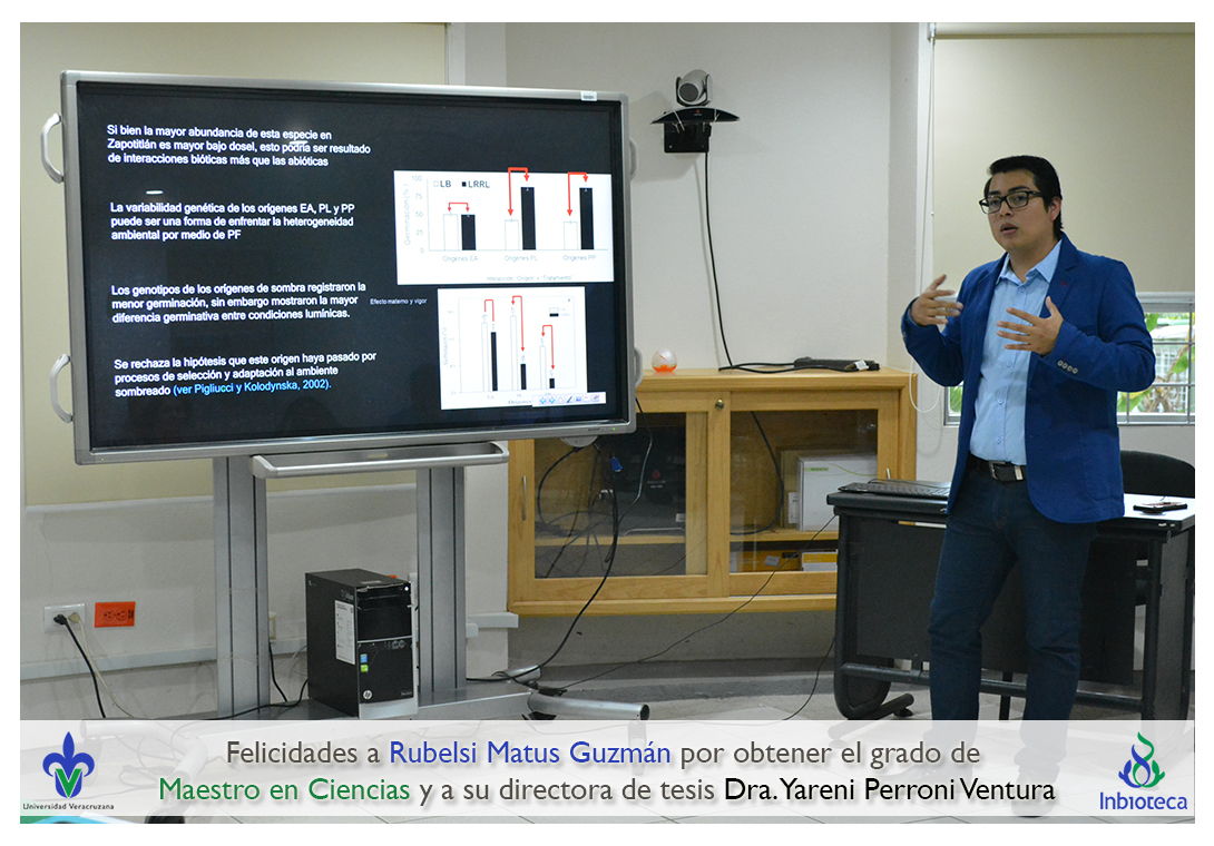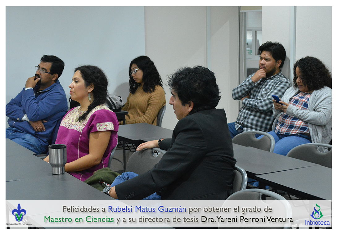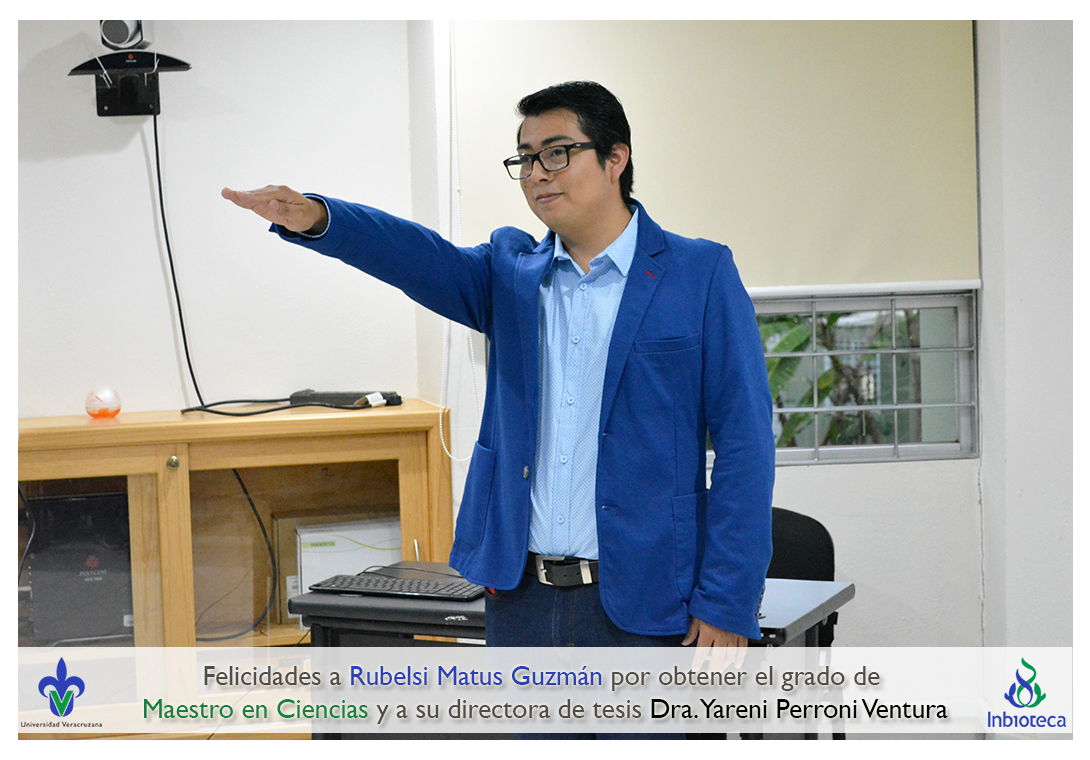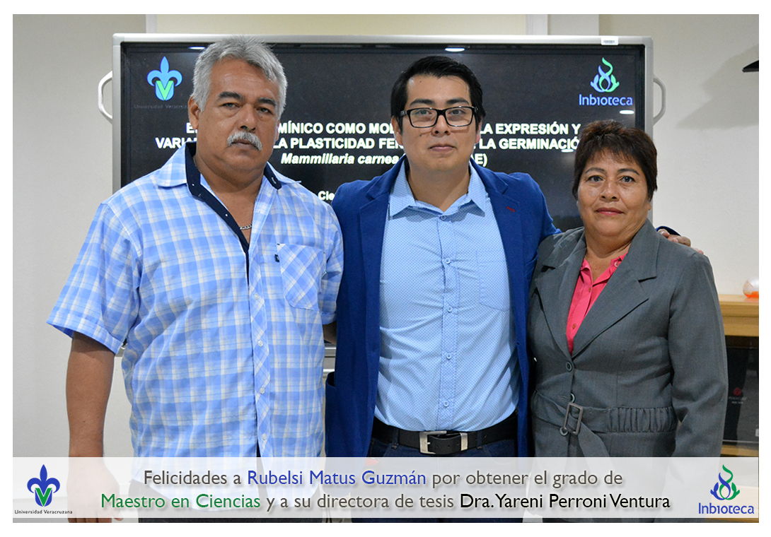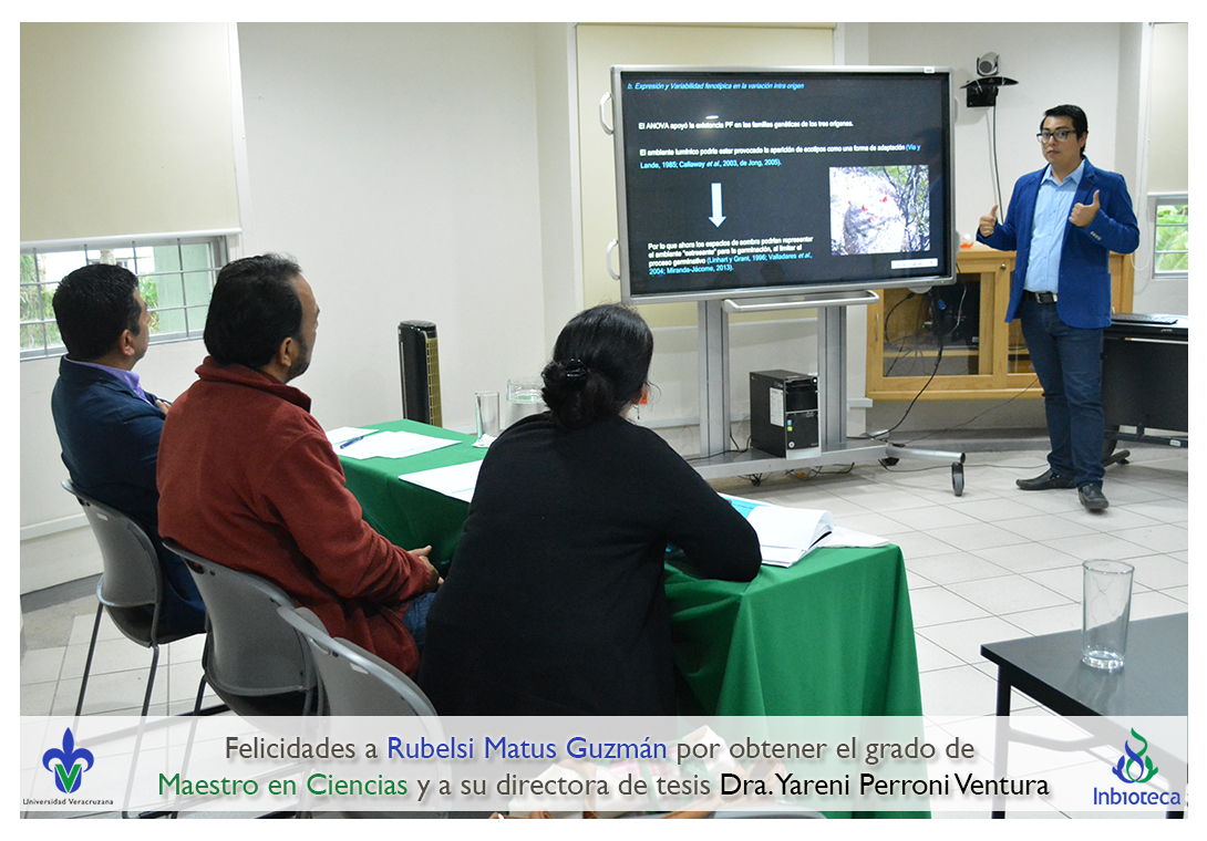 Felicidades a Rubelsi Matus Guzmán por obtener el grado de Maestro en Ciencias en Ecología y Biotecnología, a su directora de tesis Dra. Yareni Perroni Ventura, a su codirector de tesis Dr. José Antonio Miranda Jácome académico/investigador del Instituto de Investigaciones Biológicas (IIB-UV), a su comité y a todos los que contribuyeron en el trabajo realizado. ¡Enhorabuena!