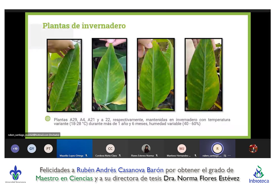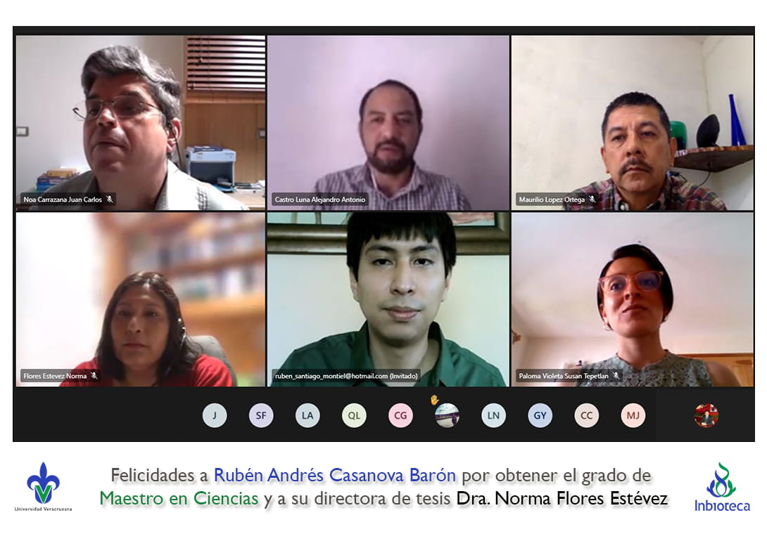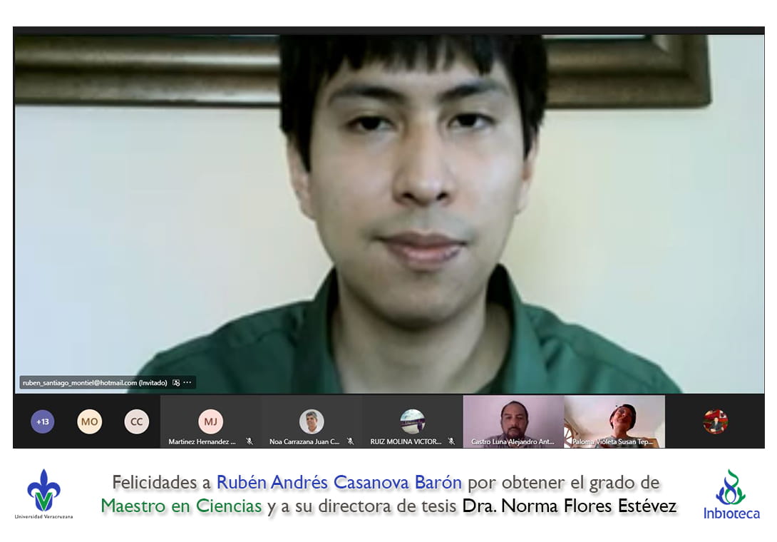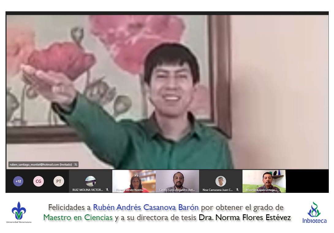 Felicidades a Rubén Andrés Casanova Barón por obtener el grado de Maestro en Ciencias en Ecología y Biotecnología, a su directora de tesis Dra. Norma Flores Estévez, a su comité y a todos los que contribuyeron en el trabajo realizado. ¡Enhorabuena!