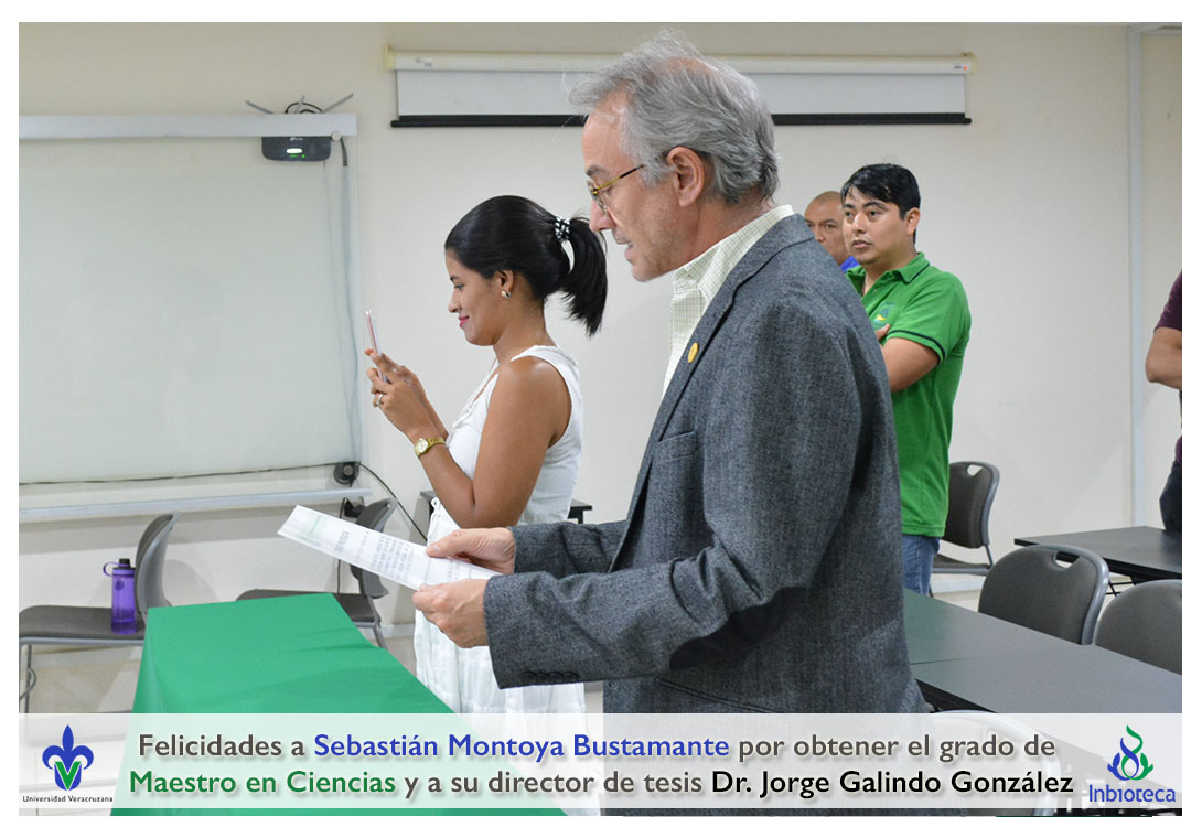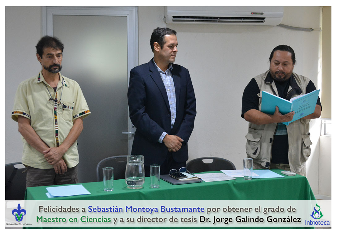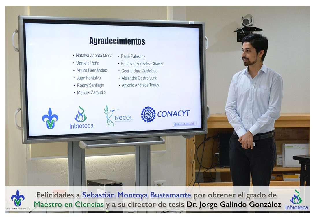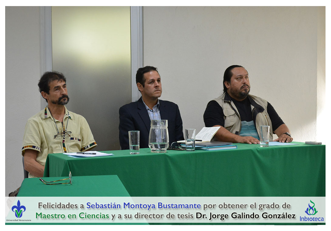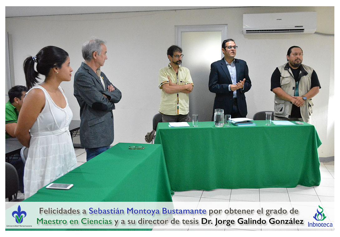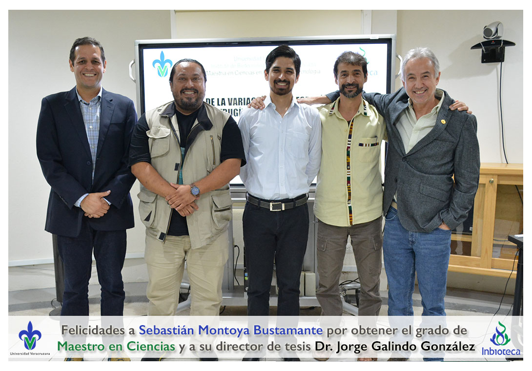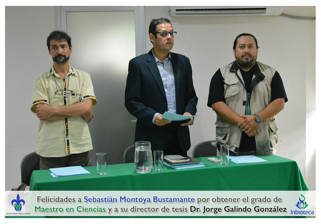 Felicidades a Sebastián Montoya Bustamante por obtener el grado de Maestro en Ciencias en Ecología y Biotecnología, a su director de tesis Dr. Jorge Rodrígo Galindo González, a su comité y a todos los que contribuyeron en el trabajo realizado. ¡Enhorabuena!