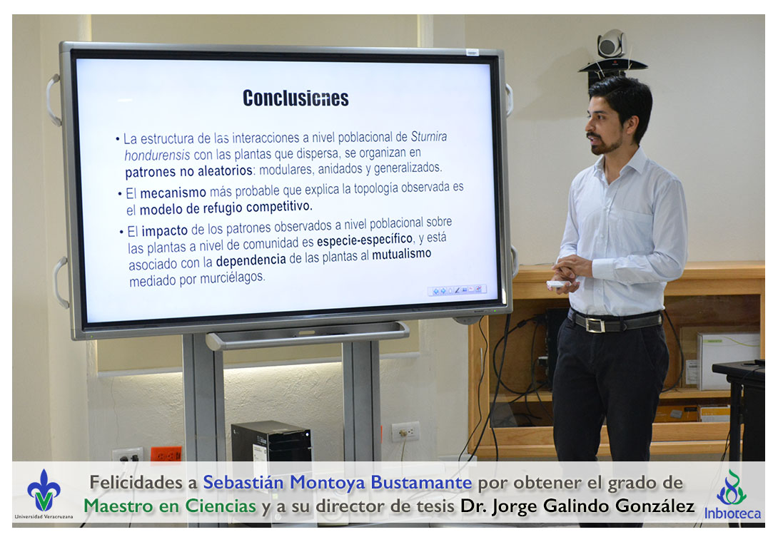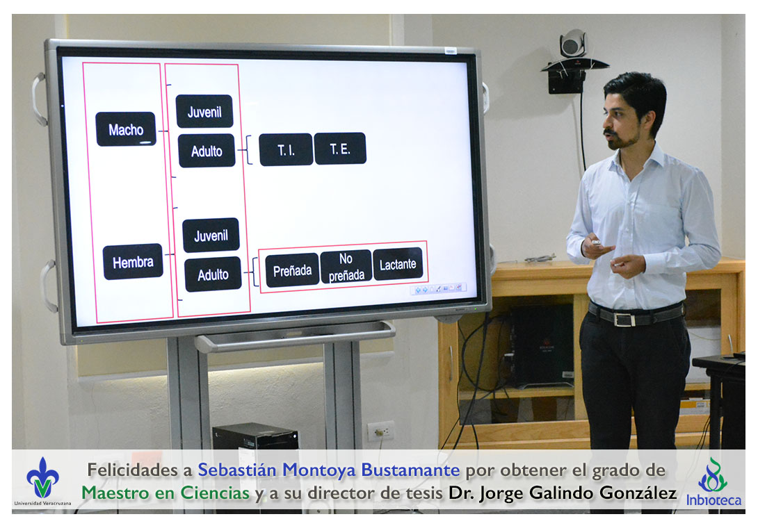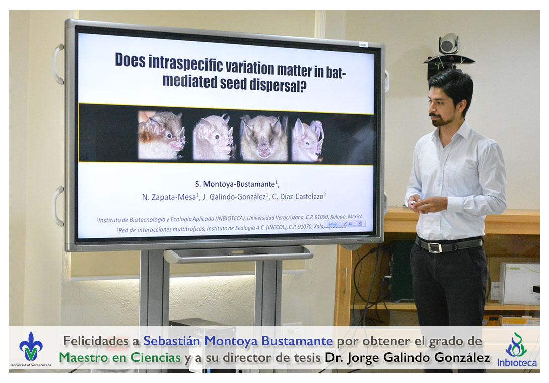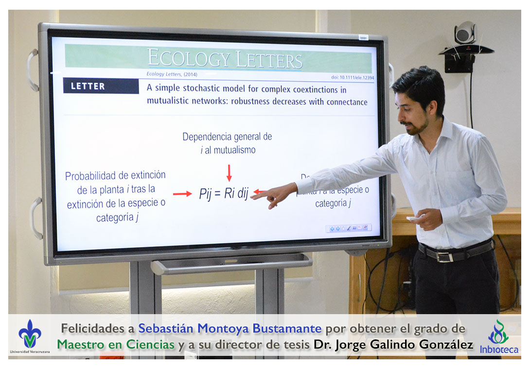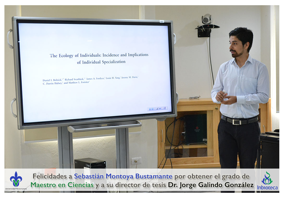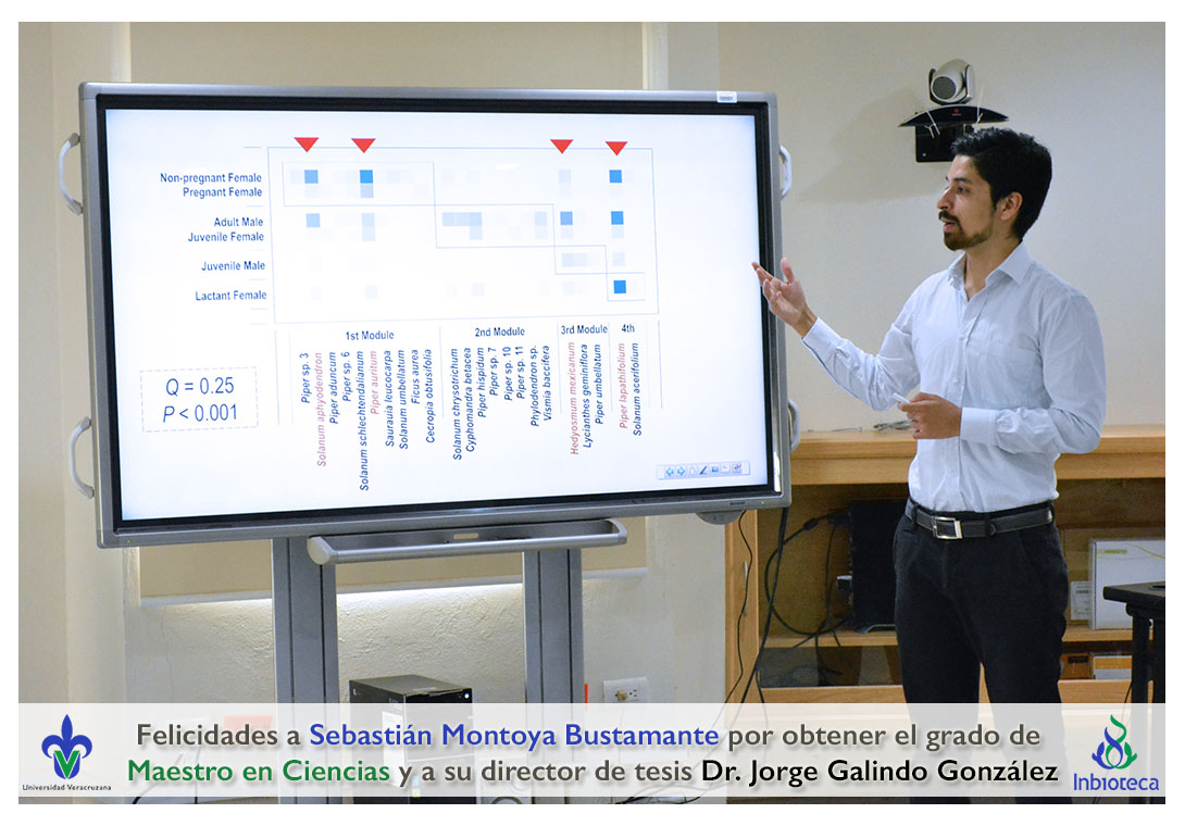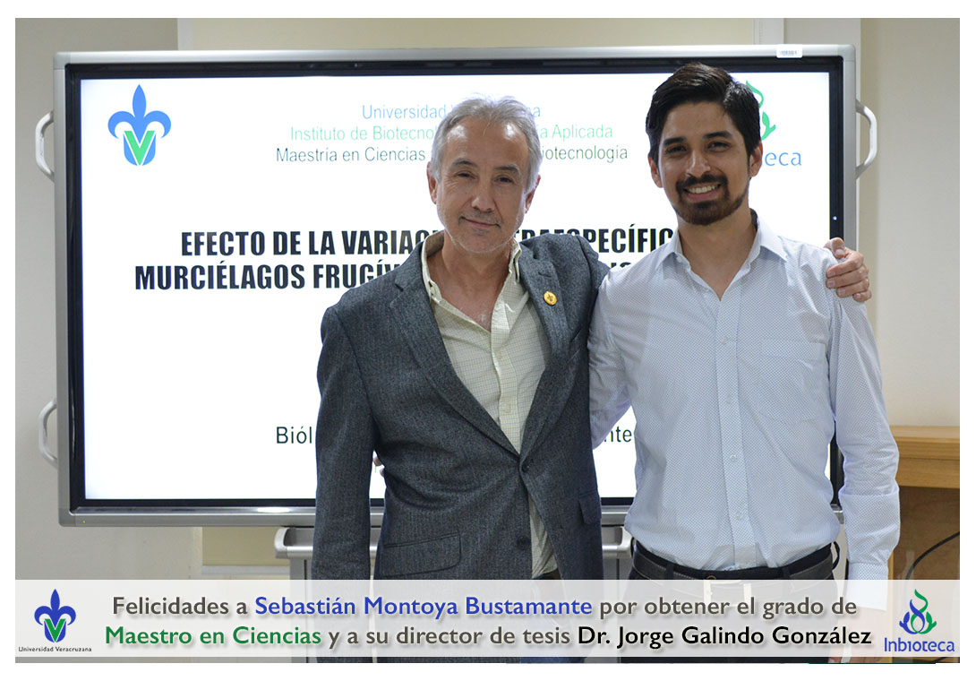 Felicidades a Sebastián Montoya Bustamante por obtener el grado de Maestro en Ciencias en Ecología y Biotecnología, a su director de tesis Dr. Jorge Rodrígo Galindo González, a su comité y a todos los que contribuyeron en el trabajo realizado. ¡Enhorabuena!