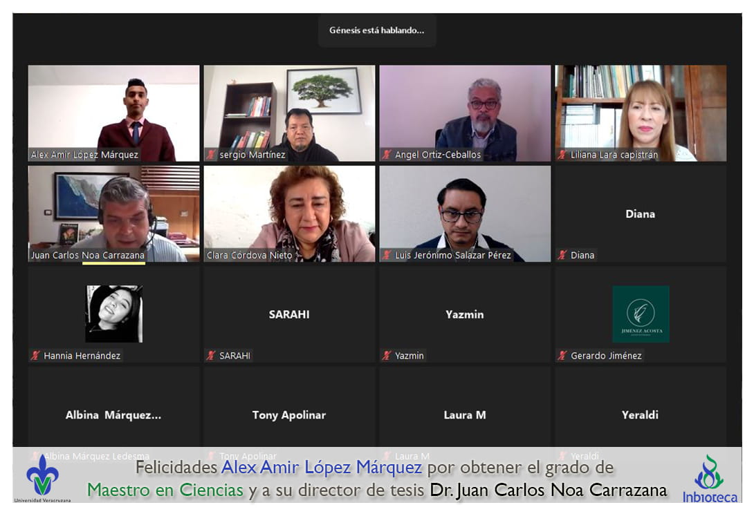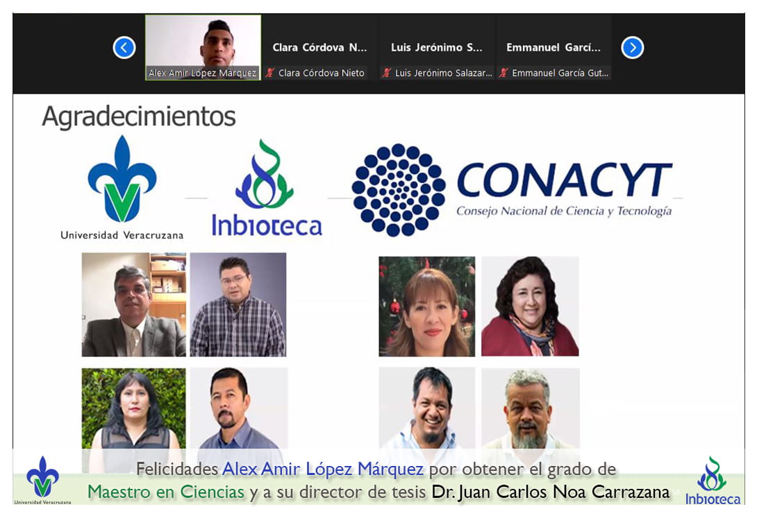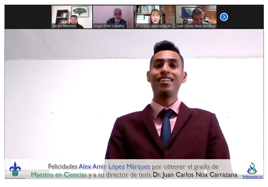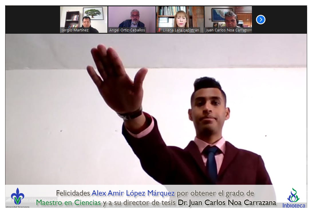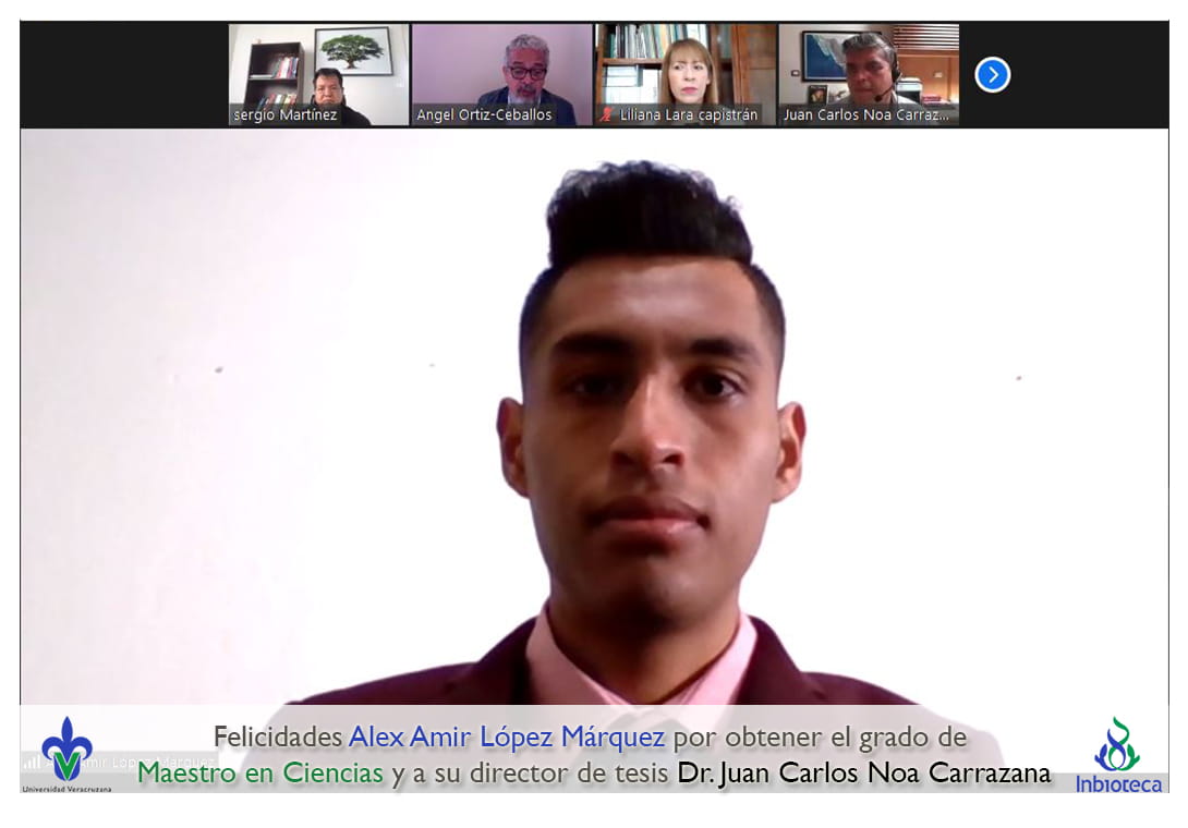 Felicidades a Alex Amir López Márquez por obtener el grado por Unanimidad con Mención Honorífica de Maestro en Ciencias en Ecología y Biotecnología, a su director de tesis Dr. Juan Carlos Noa Carrazana, a su codirector de tesis Dr. Luis Guillermo Hernández Montiel, a su comité y a todos los que contribuyeron en el trabajo realizado. ¡Enhorabuena!