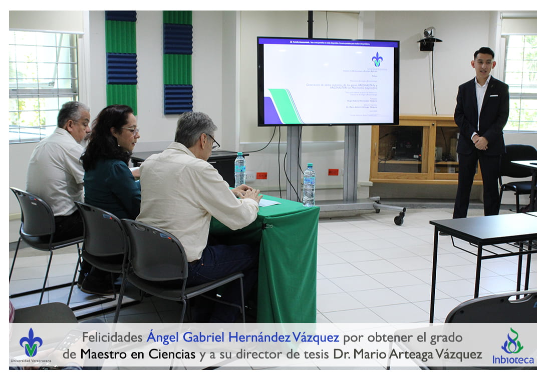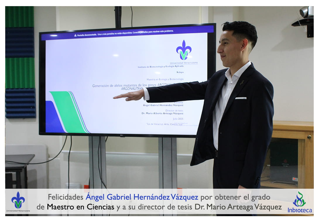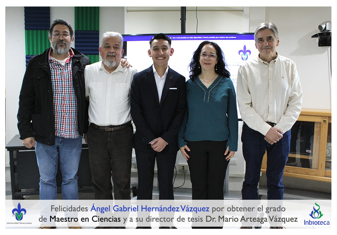Felicidades al Ing. Ángel Gabriel Hernández Vázquez por obtener por Unanimidad con MENCIÓN HONORÍFICA el grado de Maestro en Ciencias en Ecología y Biotecnología, a su director de tesis Dr. Mario Alberto Arteaga Vázquez, a su comité y a todos los que contribuyeron en el trabajo realizado. ¡Enhorabuena!