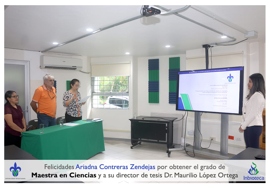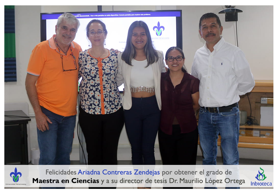 Felicidades a la Ing. Ariadna Contreras Zendejas por obtener por Unanimidad con MENCIÓN HONORÍFICA el grado de Maestra en Ciencias en Ecología y Biotecnología, a su director de tesis Dr. Maurilio López Ortega, a su comité y a todos los que contribuyeron en el trabajo realizado. ¡Enhorabuena!