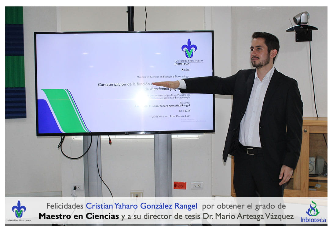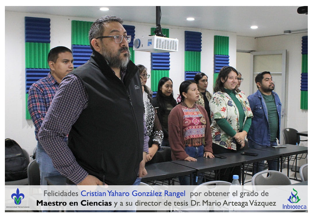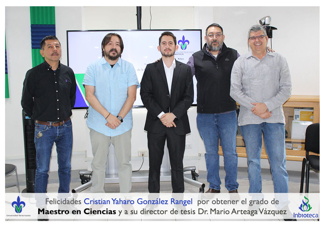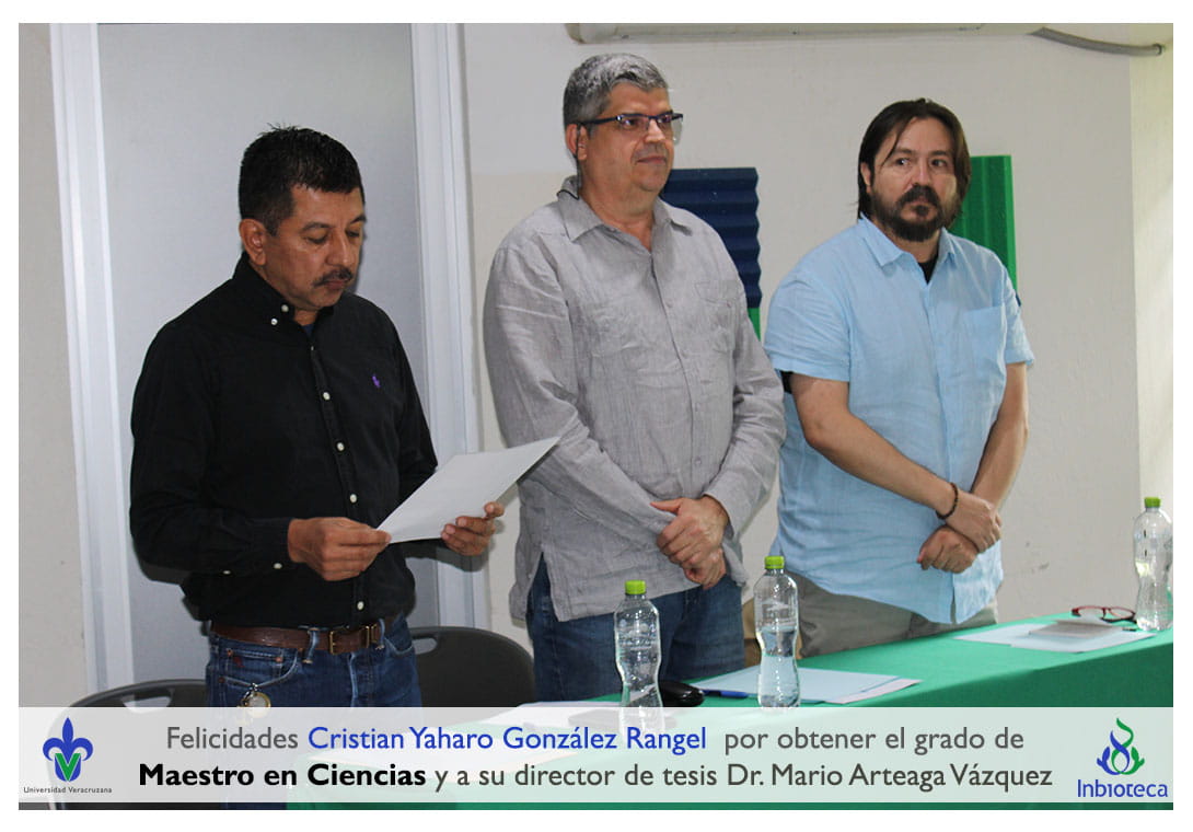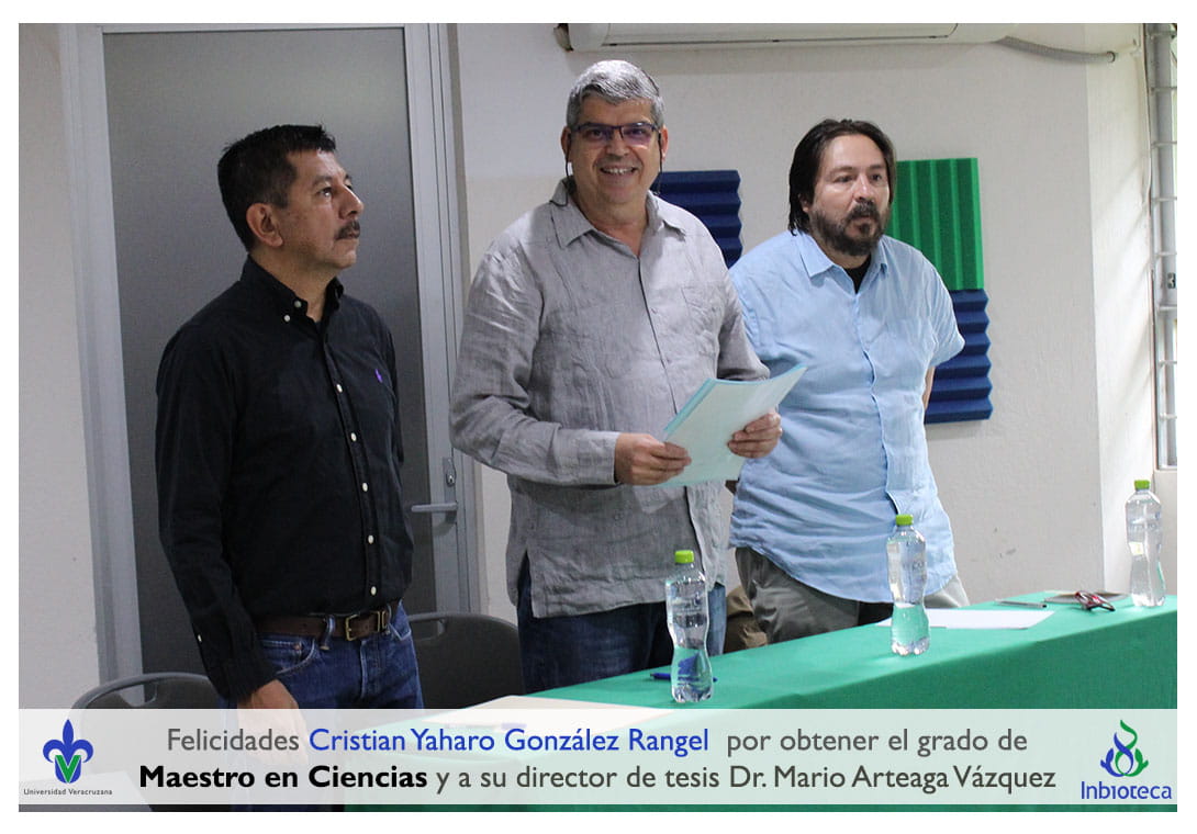 Felicidades a Cristian Yaharo González Rangel por obtener por unanimidad con MENCIÓN HONIRÍFICA el grado de Maestro en Ciencias en Ecología y Biotecnología, a su director de tesis Dr. Mario alberto Artega Vázquez, a su comité y a todos los que contribuyeron en el trabajo realizado. ¡Enhorabuena!