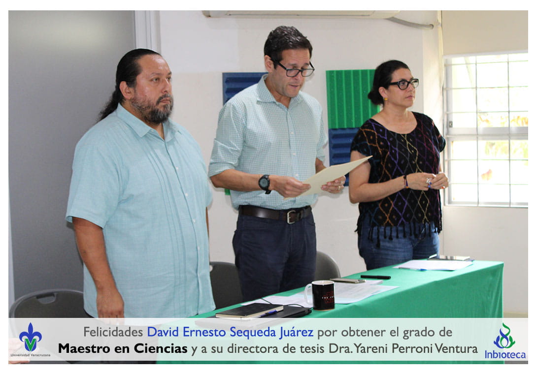 Felicidades a David Ernesto Sequeda Juárez por obtener por unanimidad el grado de Maestro en Ciencias en Ecología y Biotecnología, a su director de tesis Dra. Yareni Perroni Ventura, a su codirectora de tesis Dra. Isabelle Barois Boullard, a su comité y a todos los que contribuyeron en el trabajo realizado. ¡Enhorabuena!