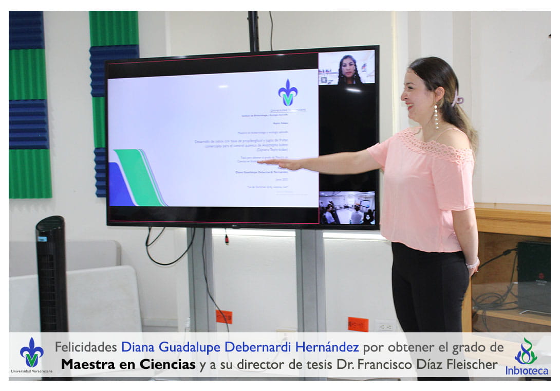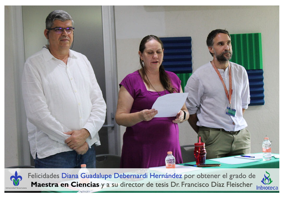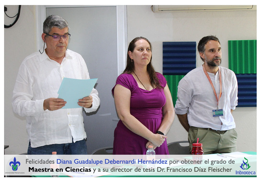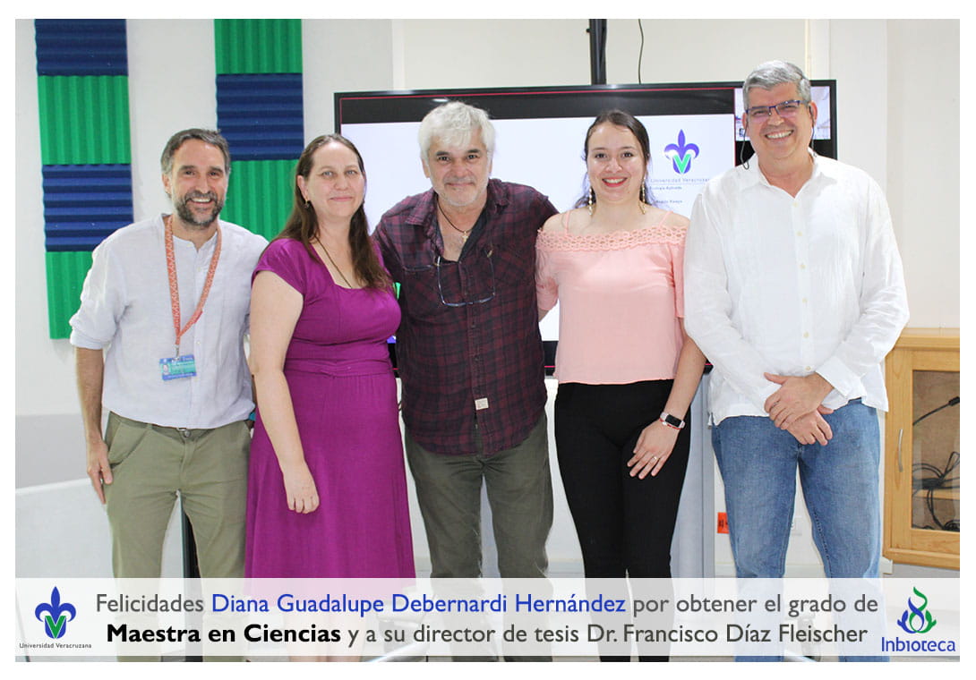 Felicidades a Diana Guadalupe Debernardi Hernández por obtener por unanimidad el grado de Maestra en Ciencias en Ecología y Biotecnología, a su director de tesis Dr. Francisco Díaz Fleischer, a su comité y a todos los que contribuyeron en el trabajo realizado. ¡Enhorabuena!