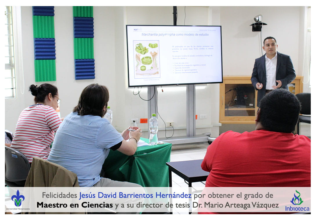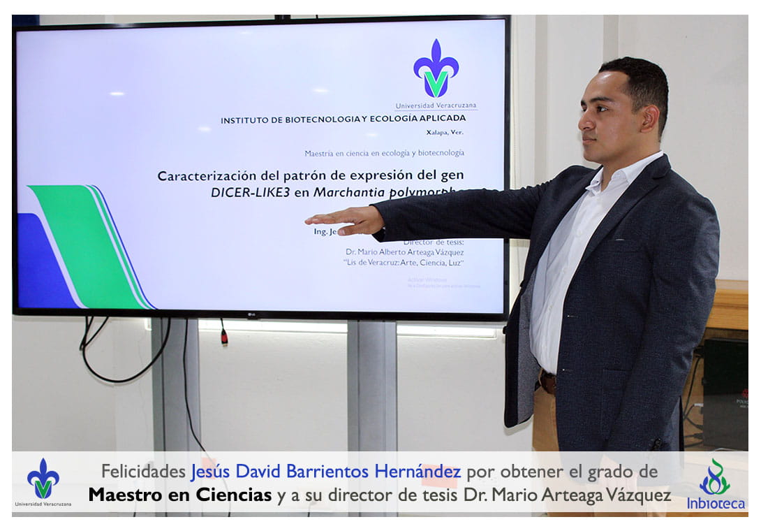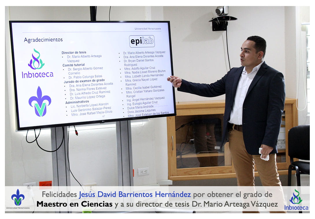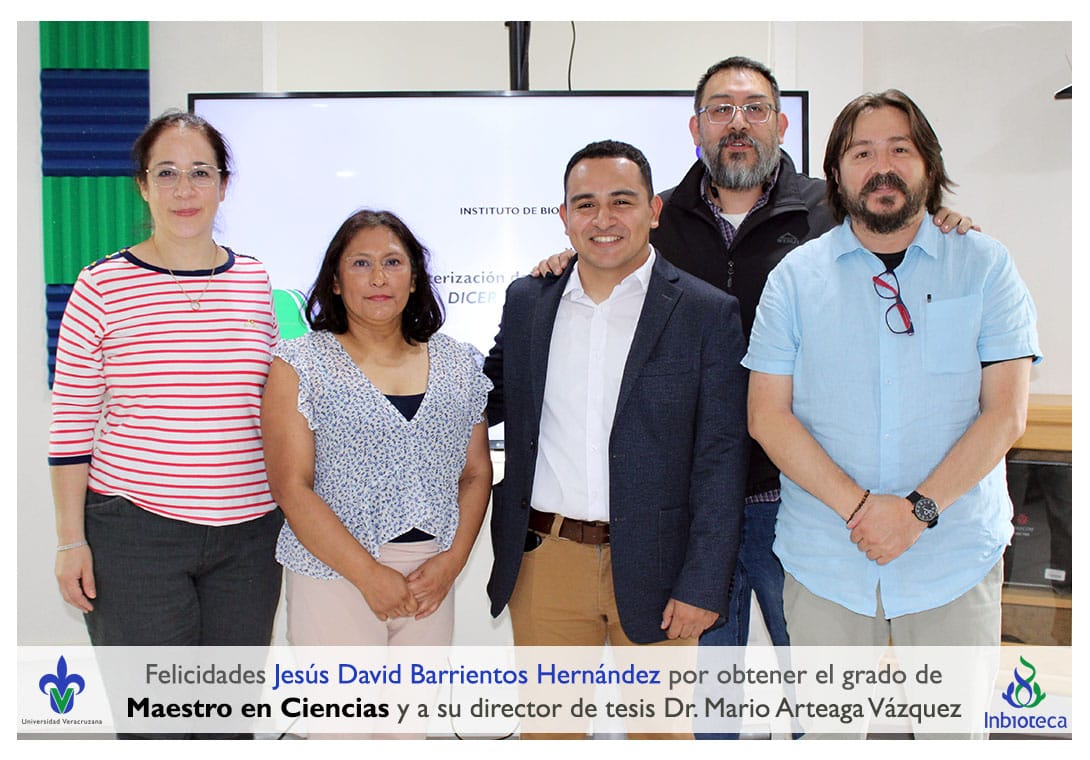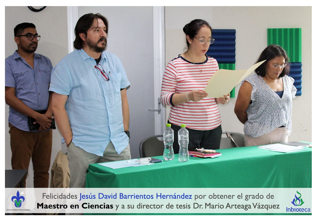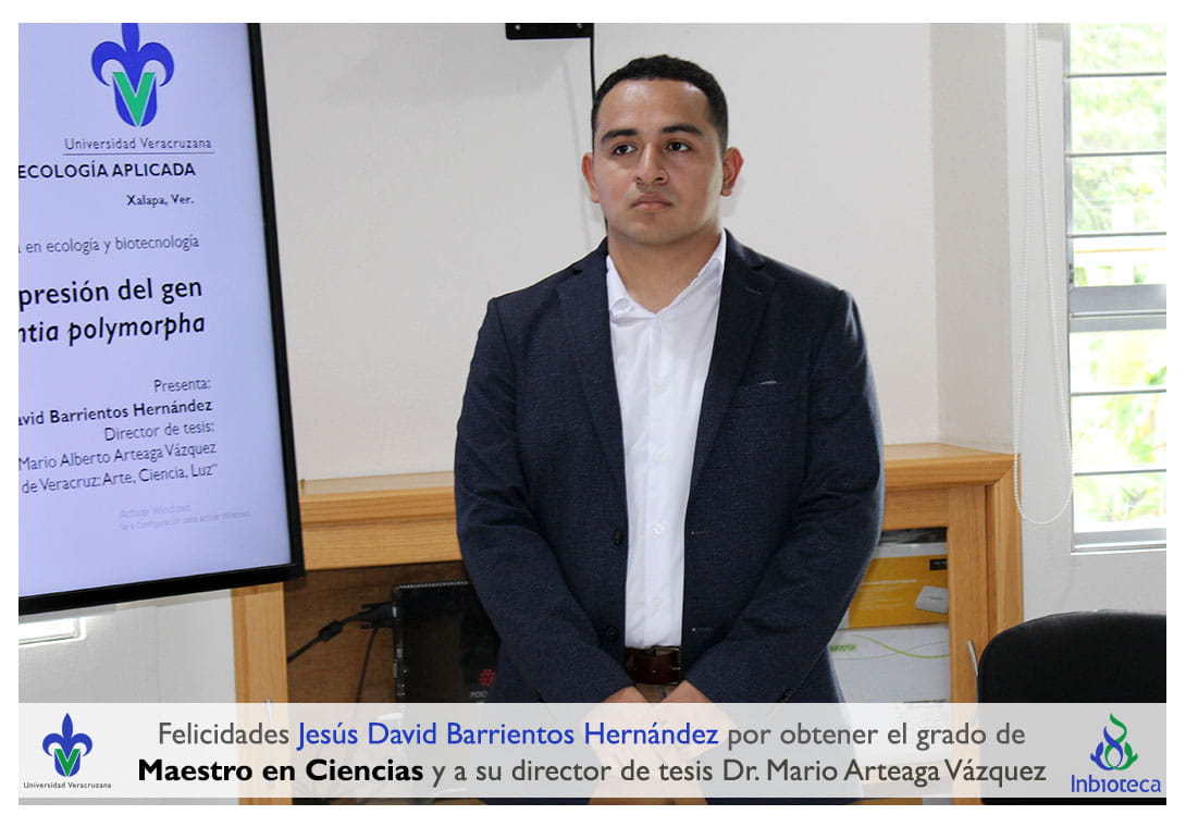 Felicidades a Jesús David Barrientos Hernández por obtener por unanimidad con MENCIÓN HONIRÍFICA el grado de Maestro en Ciencias en Ecología y Biotecnología, a su director de tesis Dr. Mario alberto Artega Vázquez, a su comité y a todos los que contribuyeron en el trabajo realizado. ¡Enhorabuena!