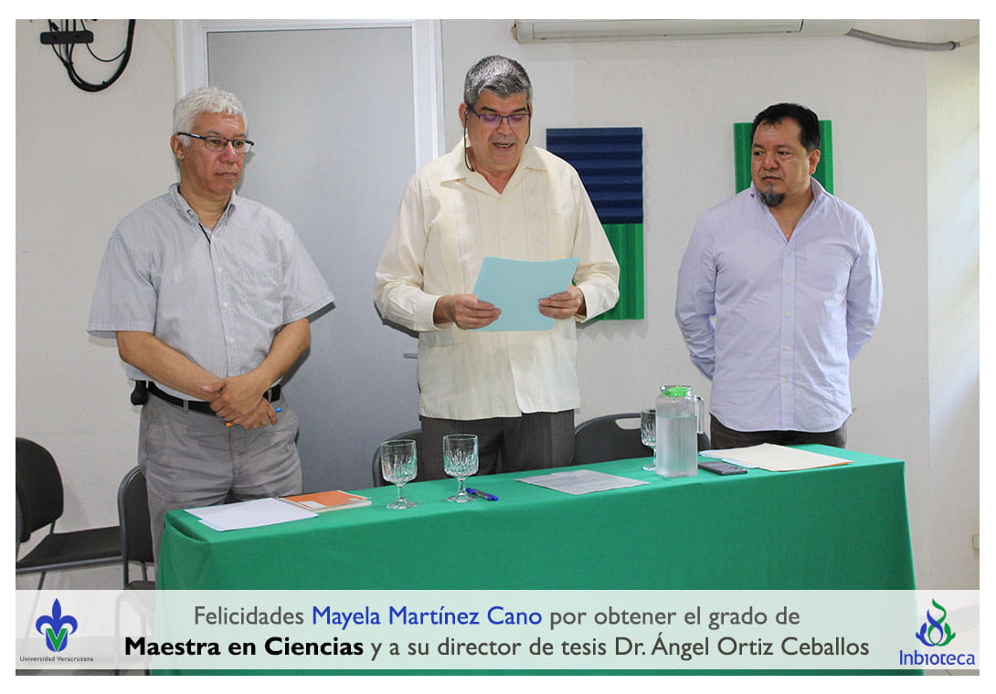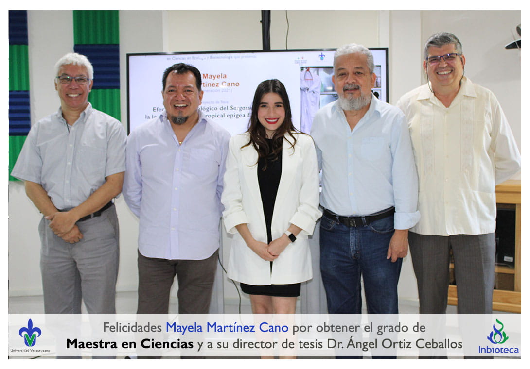 Felicidades a Mayela Martínez Cano por obtener por unanimidad el grado de Maestra en Ciencias en Ecología y Biotecnología, a su director de tesis Dr. Ángel Isauro Ortiz Ceballos, a su comité y a todos los que contribuyeron en el trabajo realizado. ¡Enhorabuena!