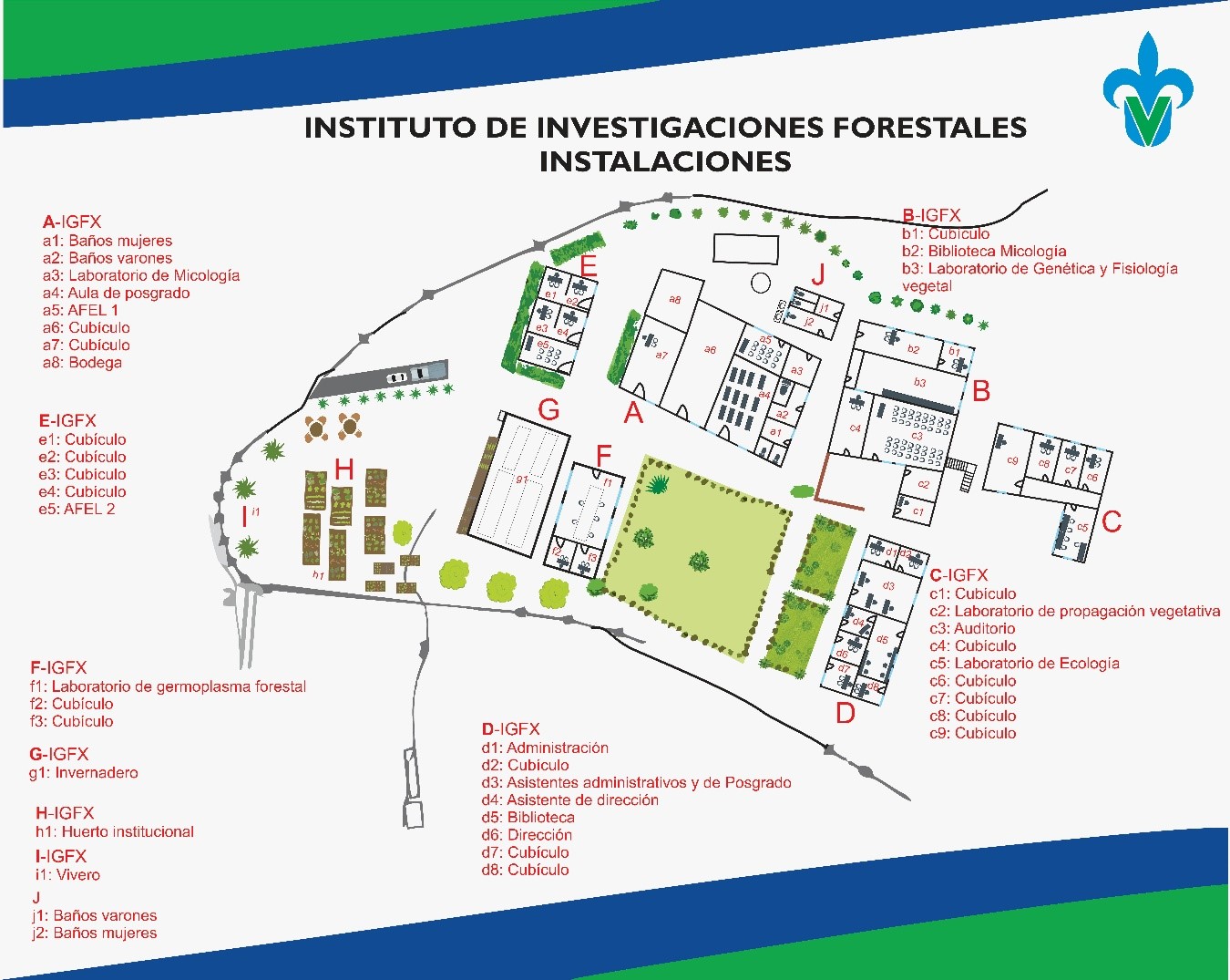 El INIFOR se encuentra establecido en el interior del Parque Ecológico “El Haya”, camino antiguo a Coatepec, ocupando cerca de diez mil metros cuadrados. Cuenta con tres edificaciones que comprenden dirección, administración, cubículos, aulas, auditorio, espacio para biblioteca y laboratorios en donde académicos y estudiantes pueden desarrollar sus actividades de investigación.
