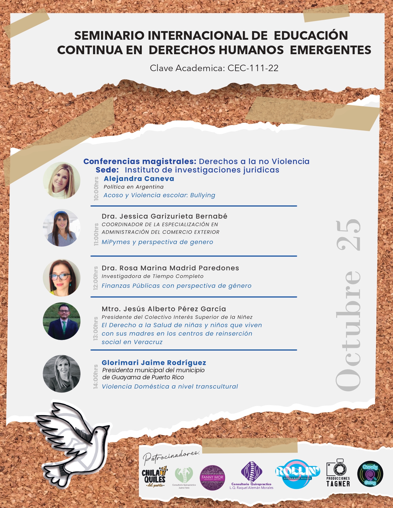 CONFERENCIA MAGISTRAL INTERNACIONAL ARGENTINA EN EL INSTITUTO DE INVESTIGACIONES JURÍDICAS<<Acoso y Violencia escolar: Bullying>> Alejandra Caneva MODALIDAD HÍBRIDA 25-10-2022. 10: 00 pm