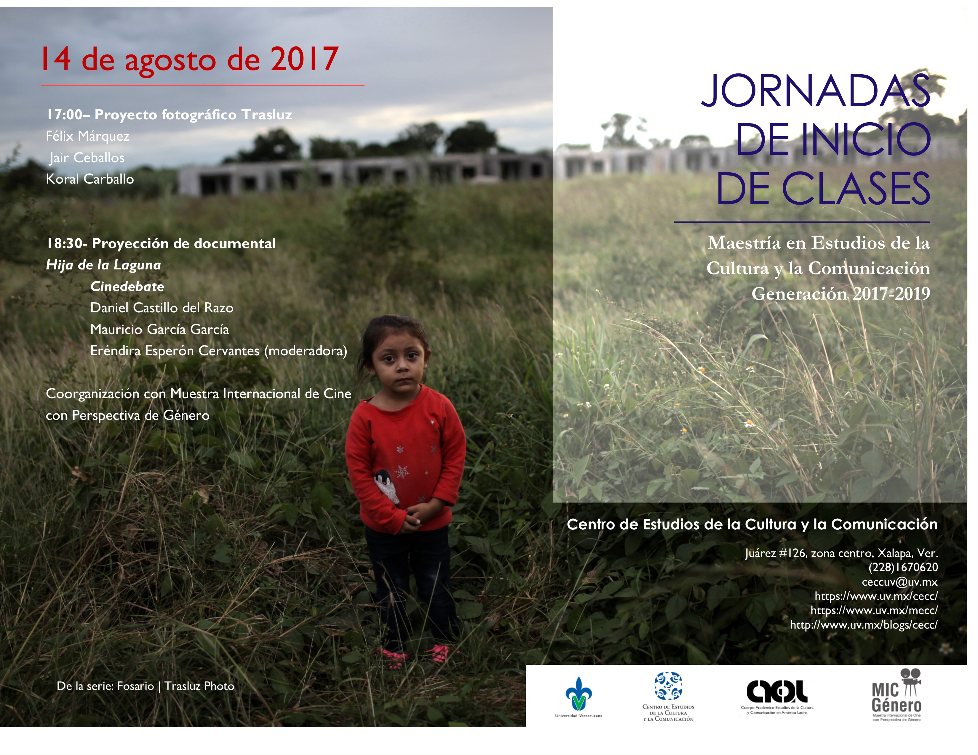 A las 17 horas será la presentación del proyecto fotográfico Trasluz (Félix Márquez, Jair Ceballos, Koral Carballo) y vamos a tener algunas de sus muestras en la parte exterior del Centro, a las 18:30 se realizará la proyección de documental MICGénero Hija de la laguna y al finalizar habrá una mesa de debate.