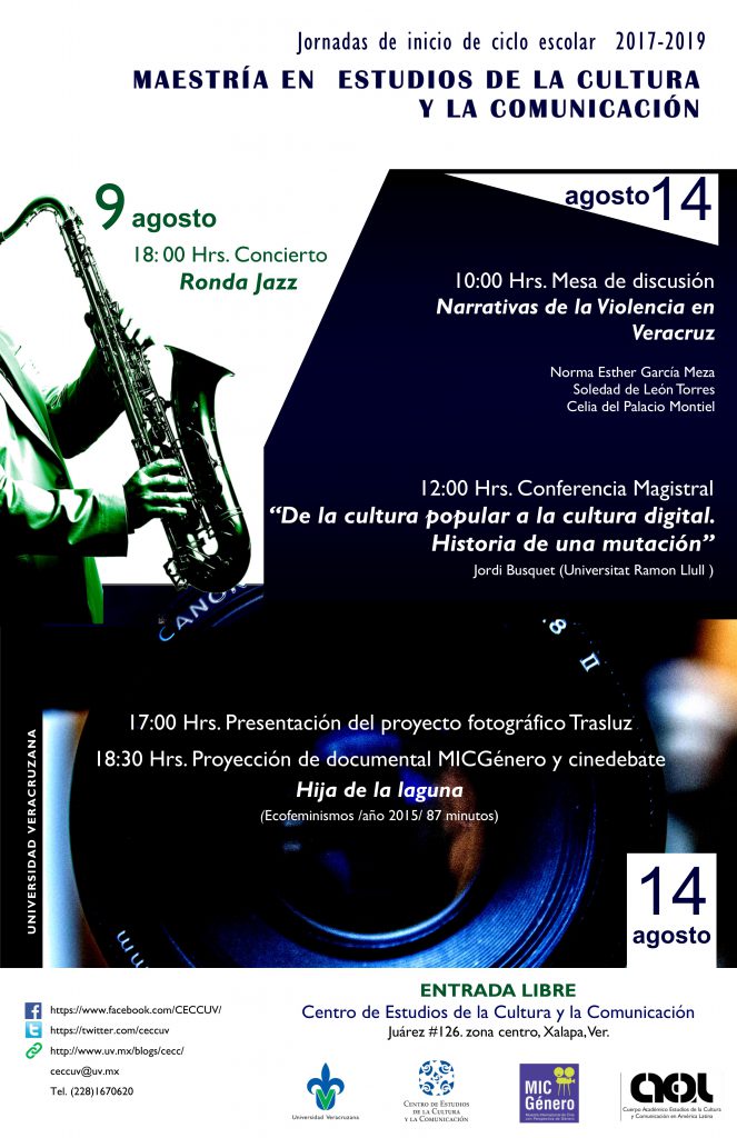 Luego, los días 9 y 14 tendremos las Jornadas de inicio escolar de la Maestría en Estudios de la Cultura y la Comunicación.
