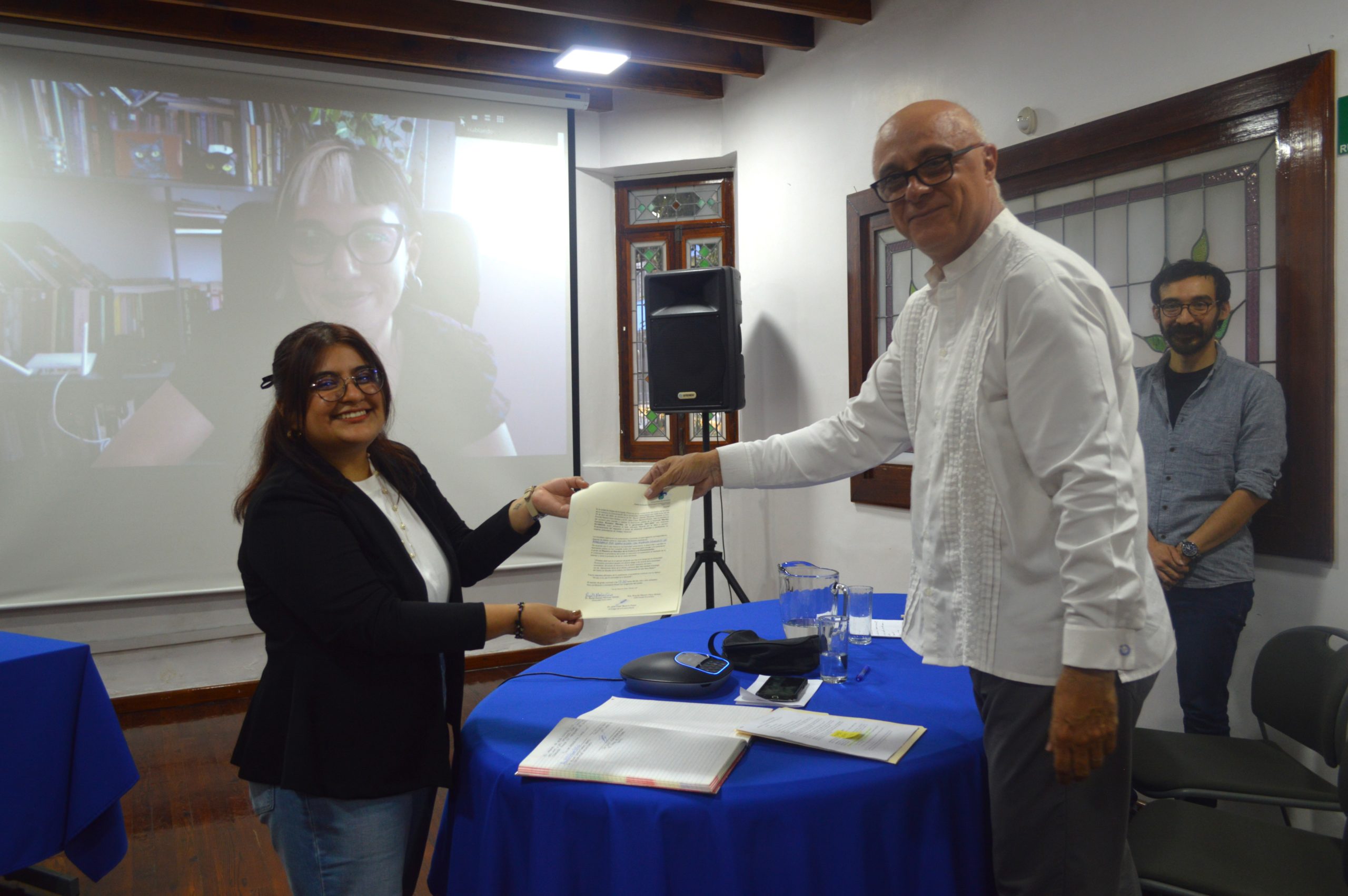 Carolina recibió, por unanimidad con mención honorífica, el grado de Maestra en Estudios de la Cultura y la Comunicación.