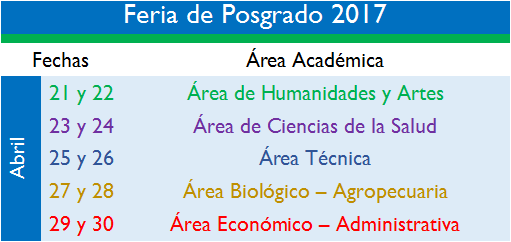 Por esta razón, los posgrados estarán calendarizados de acuerdo al Área Académica de la siguiente forma:
