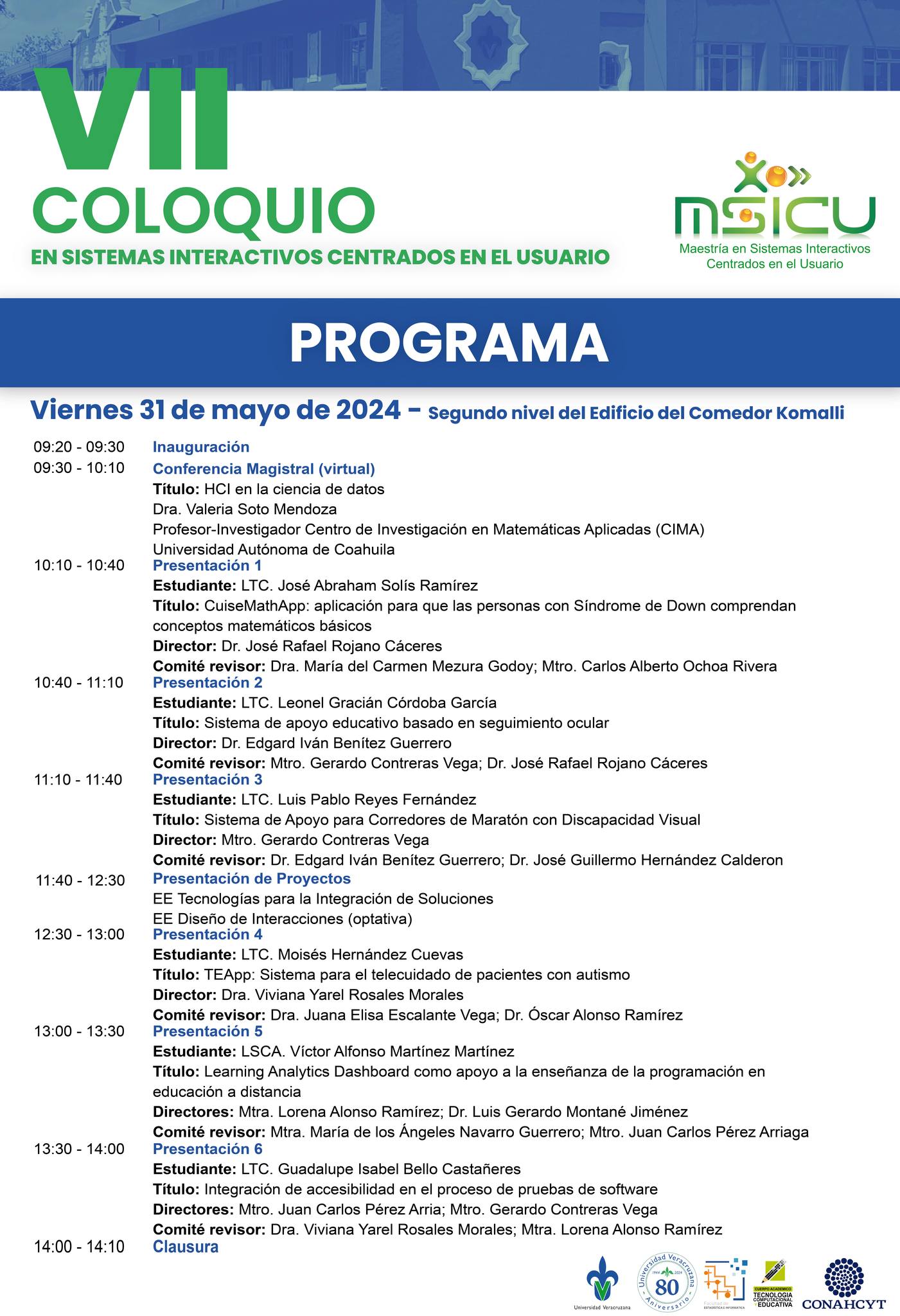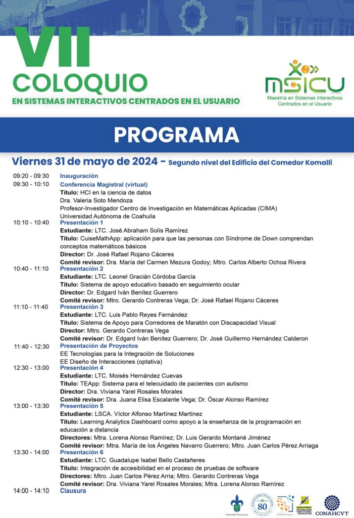 Página Web del Evento https://www.uv.mx/csicu/ Nota Universo FEI realizó VII Coloquio en Sistemas Interactivos Centrados en el Usuario