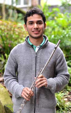 Diego Alberto tiene 15 años, estudia la preparatoria y está por iniciar el octavo semestre preparatorio en la Facultad. Heredó el gusto que sus padres tienen por la música y siguió los pasos de su hermana, quien toca violín. “Recuerdo que cuando estaba chico, en la escuela veía libros de instrumentos musicales y siempre me llamó la atención la flauta; desde ese entonces me decidí por ella.