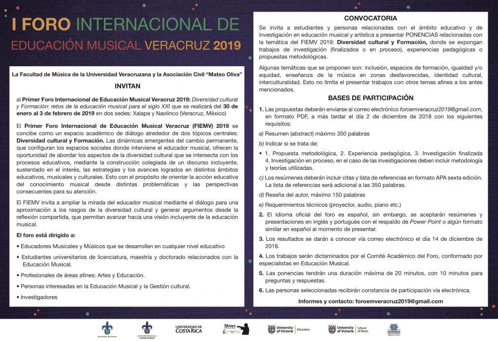 Página oficial del Foro Internacional de Educación Musical Veracruz 2019: https://www.uv.mx/fiemv/