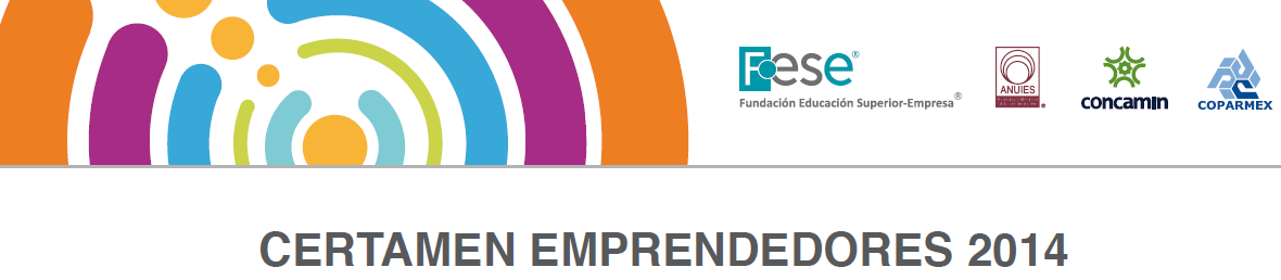 FESE, ANUIES, CONCAMIN y COPARMEX convocan al Certamen Emprendedores 2014. Cuyo objetivo es impulsar una cultura emprendedora dentro de las Instituciones de Educación Superior del país, así como reconocer la capacidad innovadora de los jóvenes estudiantes y egresados de las distintas disciplinas de la educación superior.