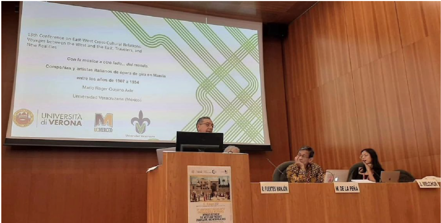 Dado que, en esta edición, el tópico se enfocó en la relevancia de los viajes como vías de reciprocidad de contenidos, el Dr. Quijano optó por intervenir con un trabajo que llevó por título “Con la música a otro lado… del mundo. Compañías y artistas italianos de ópera de gira en Manila entre los años de 1907 a 1934”. Resulta interesante que, a decir del ponente, algunos de aquellos actores provenían del norte de Italia o desempeñaron labores en las regiones aledañas a la sede del presente congreso, cuya Arena di Verona, es una referencia mundial dentro de la tradición de la ópera.