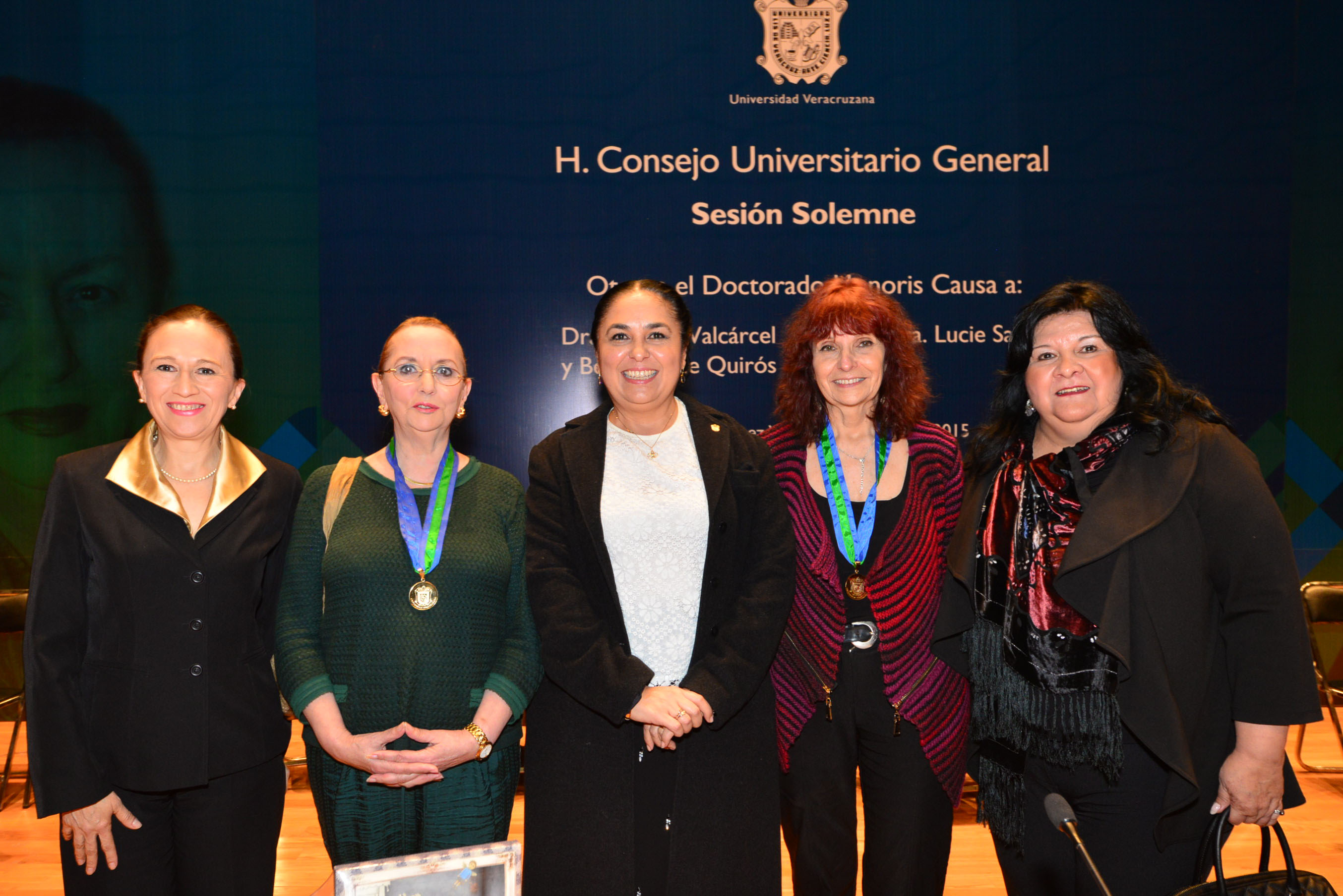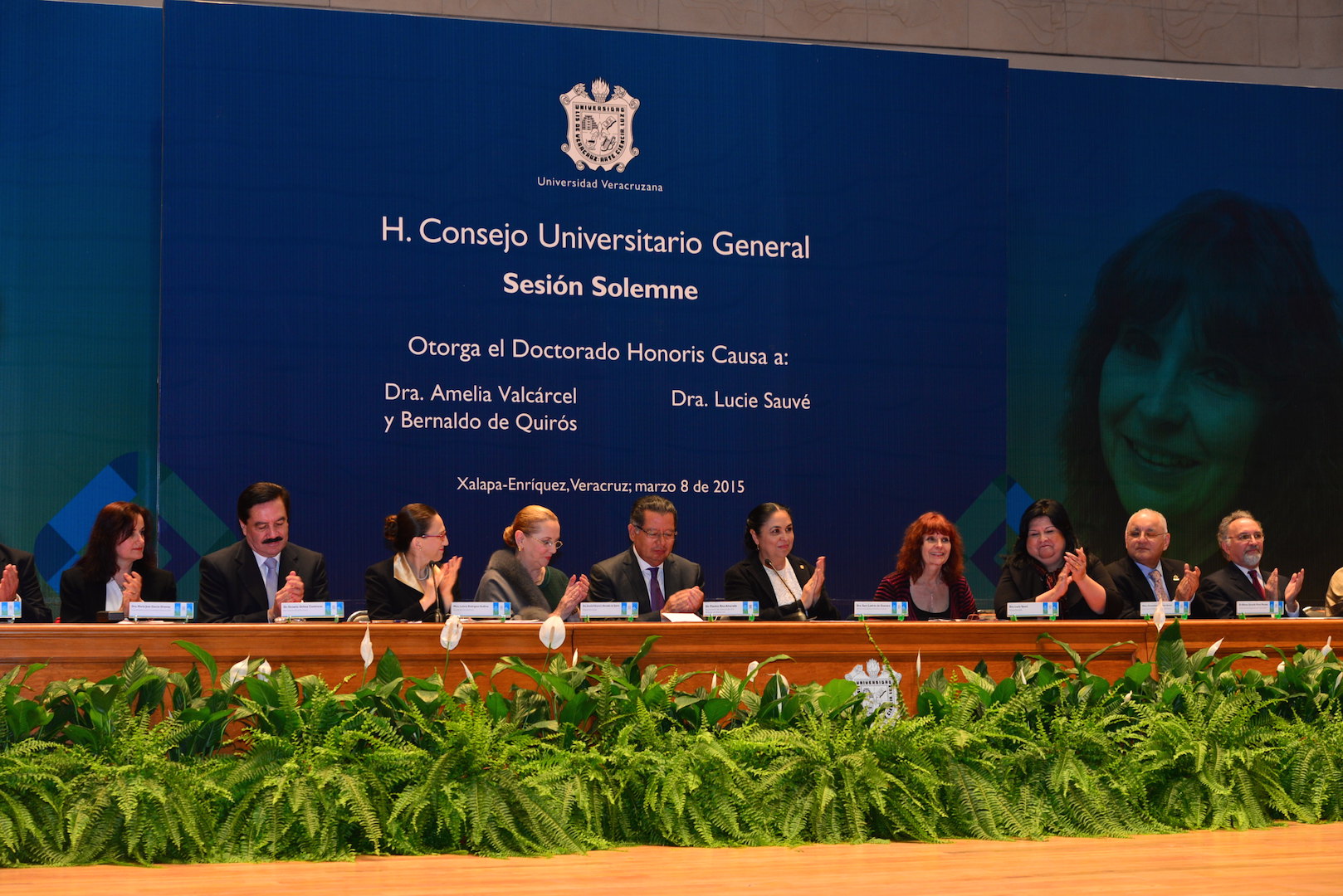 La Universidad Veracruzana (UV) entregó este domingo su máxima distinción académica, el Doctorado Honoris Causa, a la ambientalista canadiense Lucie Sauvé y la filósofa española Amelia Valcárcel en una ceremonia que se llevó a efecto en el marco del Día Internacional de la Mujer y en el que, justamente, las galardonadas y la Rectora de esta casa de estudios, Sara Ladrón de Guevara, honraron en sus mensajes a las mujeres, la educación y la universidad como institución civilizatoria.