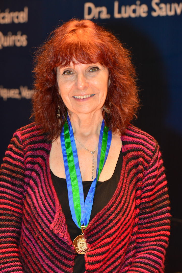 Lucie Sauvé fue la primera en recibir el Doctorado Honoris Causa, tras haber sido propuesta por el Instituto de Investigaciones en Educación (IIE) y su titular, Edgar González Gaudiano, quien leyó su semblanza.