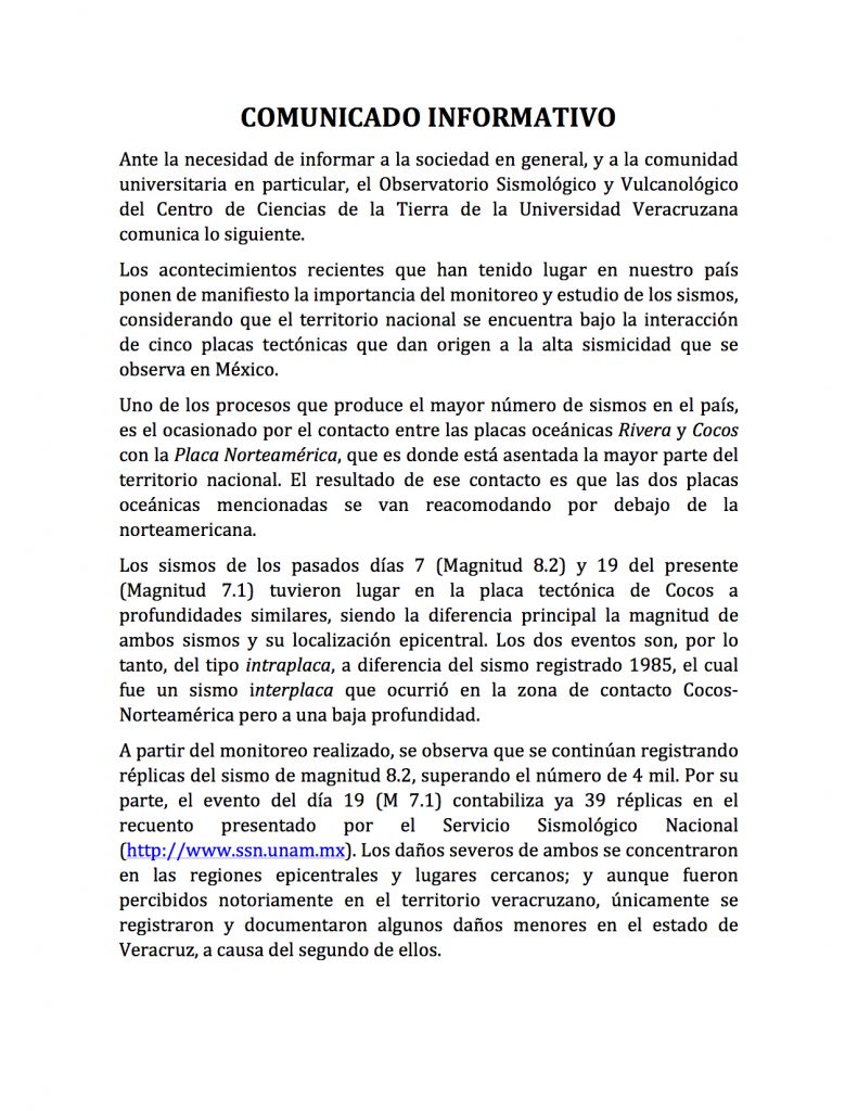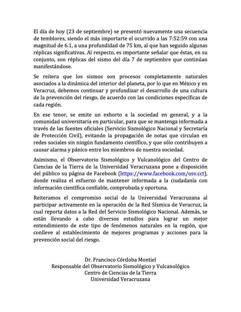 Sismos recientes: CCT de la UV informa