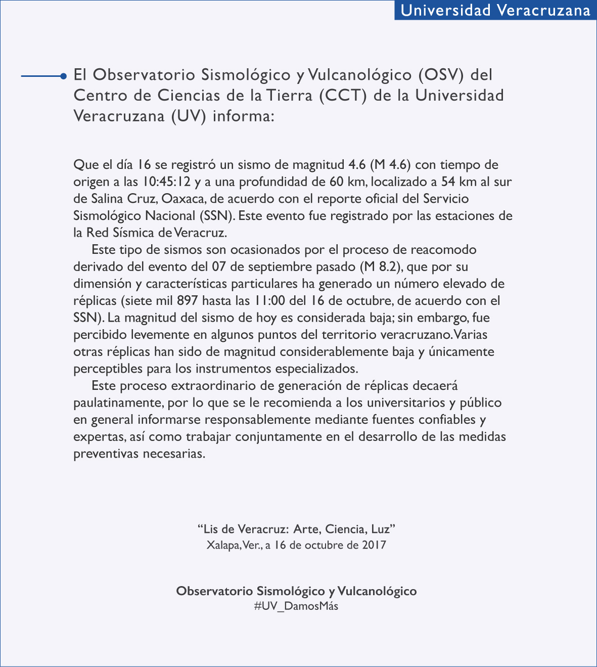 El Observatorio Sismológico y Vulcanológico del Centro de Ciencias de la Tierra de la UV informa