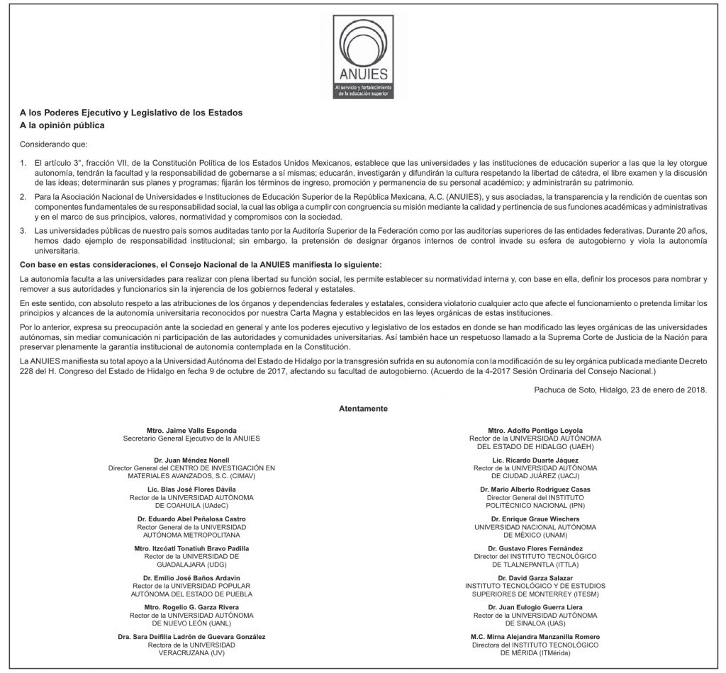 Por las autonomías de las universidades y en apoyo a la UAEH