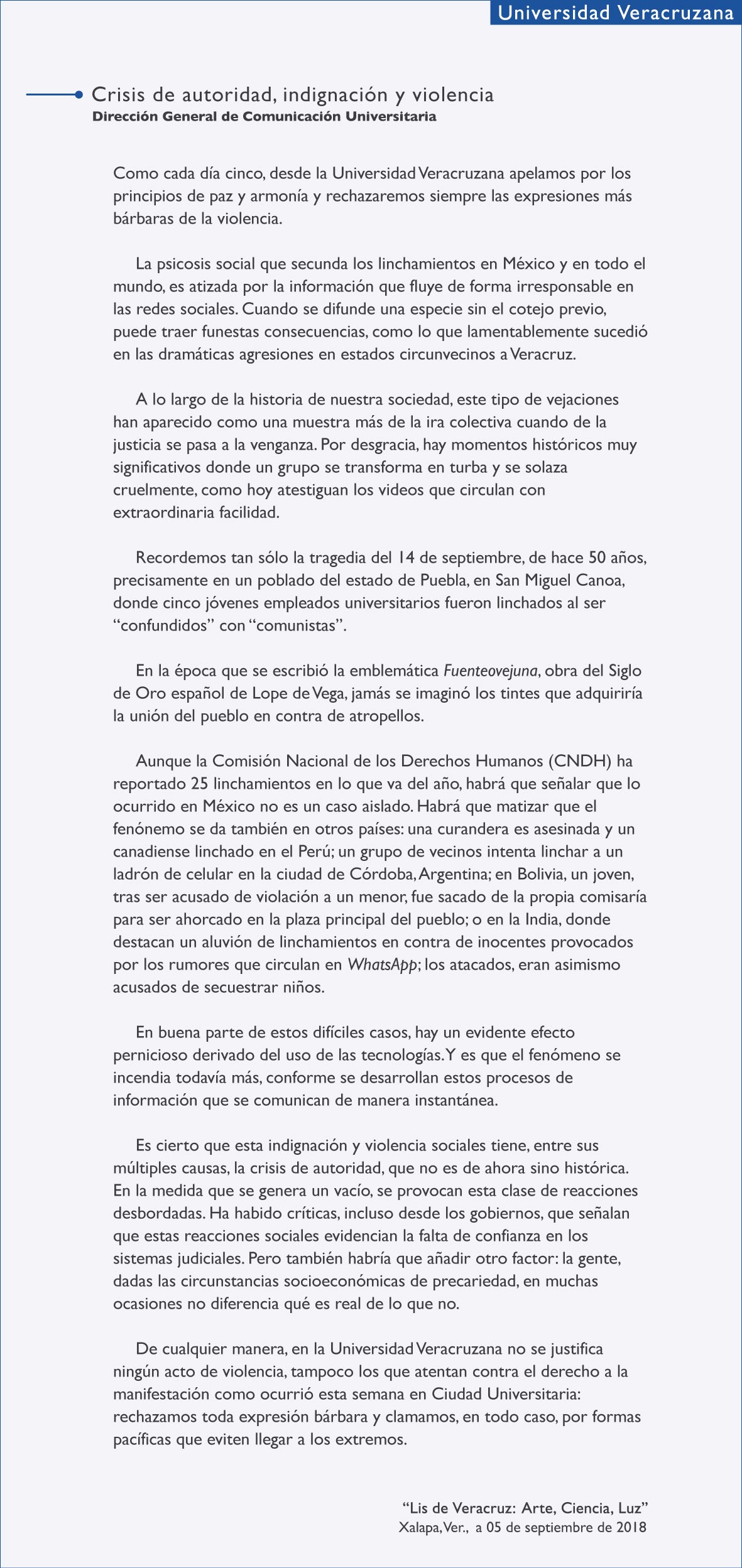 Crisis de autoridad, indignación y violencia.
