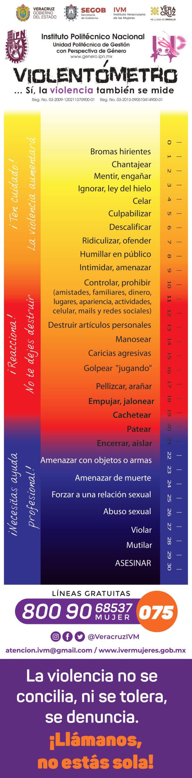 El Violentómetro es una herramienta visual y educativa que te permite identificar los diferentes niveles de violencia, desde los más leves hasta los más graves. Esta herramienta te ayudará a reconocer comportamientos que podrían pasar desapercibidos, como los celos excesivos, las manipulaciones emocionales, las amenazas y los abusos verbales, que son indicios de violencia.