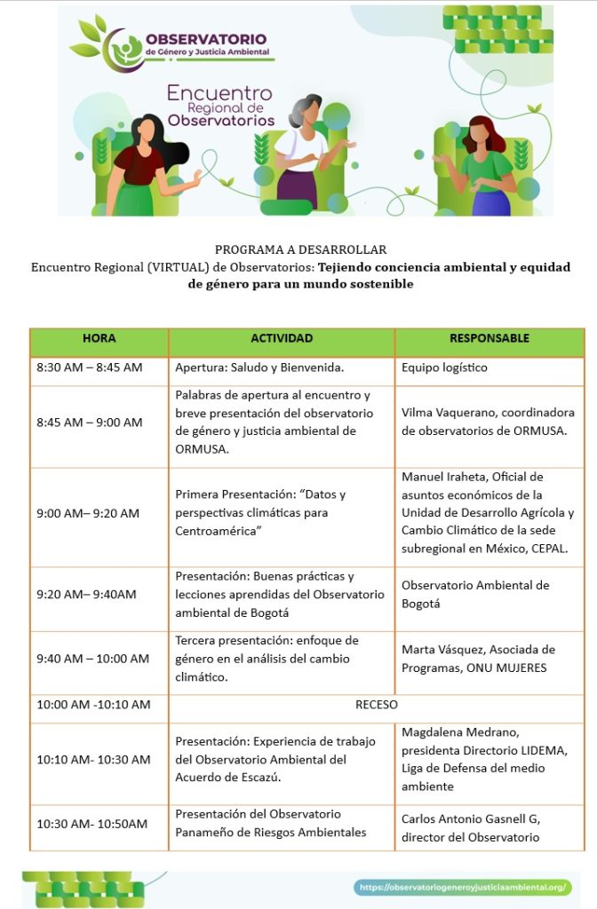 Se participó en el Encuentro Regional (VIRTUAL) de Observatorios: Tejiendo conciencia ambiental y equidad de género para un mundo sostenible con la ponencia “Alerta temprana enfocada a seguridad alimentaria y nutricional; indicadores de género en la observancia, análisis y monitoreo climático”, evento organizado por La Organización de Mujeres Salvadoreñas por La Paz (ORMUSA).