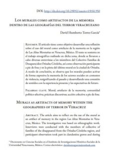 Los murales como artefactos de la memoria dentro de las geografías del terror veracruzano. Año: 2023 http://www.scielo.org.mx/scielo.php?script=sci_arttext&pid=S1870-00632022000300243 |