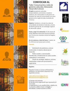 Taller: Comunicación y redes de gestores culturales. Detonando Desarrollo Cultural. Taller: Comunicación y redes de gestores culturales. Detonando Desarrollo Cultural.