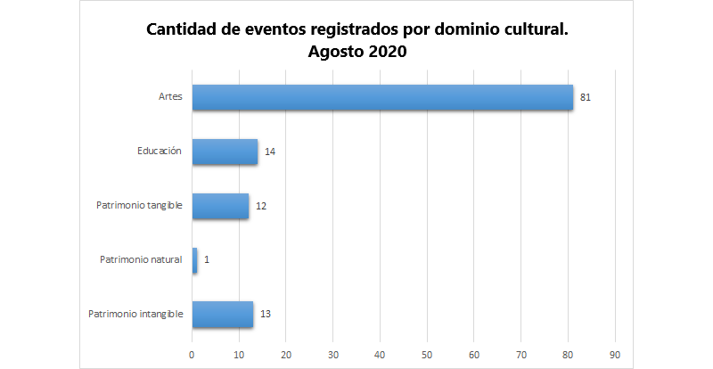 Cantidad de eventos registrados por dominio cultural, Agosto 2020.