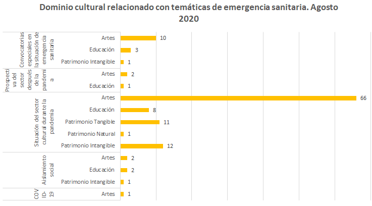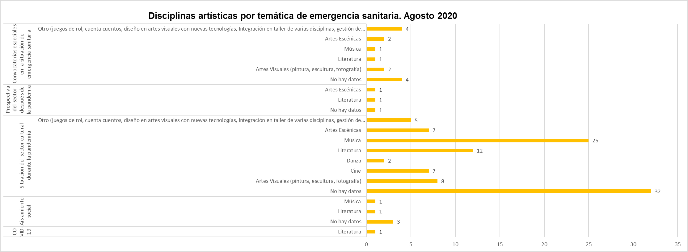 Disciplinas artísticas por temáticas de emergencia sanitaria, Agosto 2020.