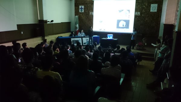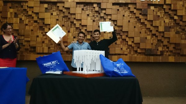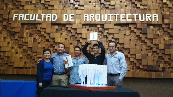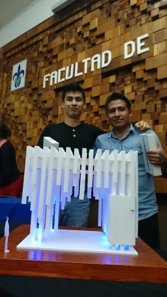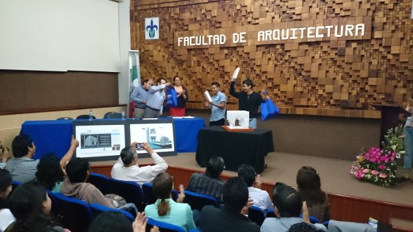 El día 21 de octubre en el aula magna de la Facultad, se llevó a cabo la presentación y premiación de los alumnos Oswaldo Guzmán Montero y Alberto Hernández de la Luz, ganadores del tercer lugar del concurso nacional «Diseña el pabellón Panel Rey para EXPO CIHAC».