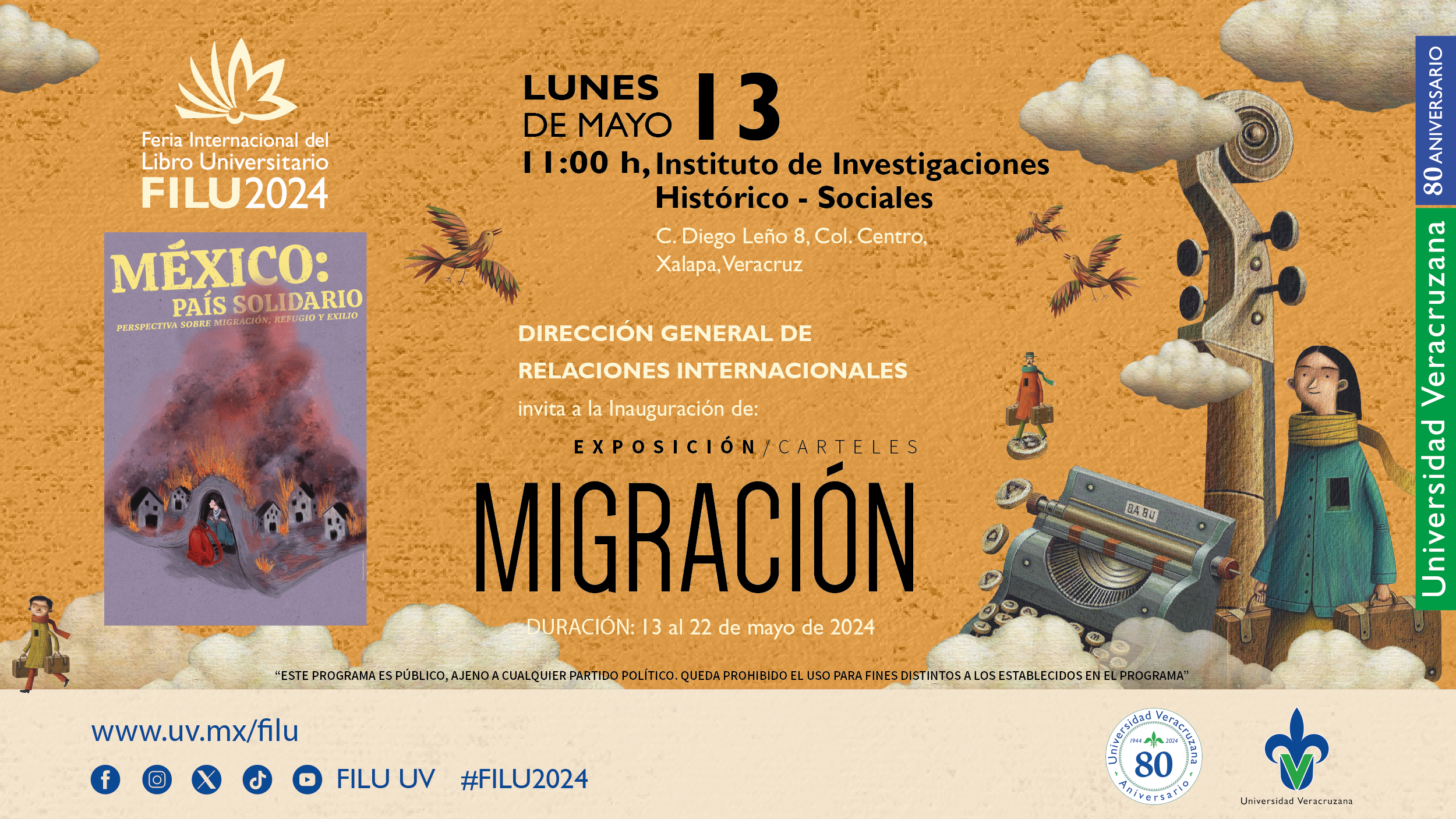 En colaboración con la Feria Internacional del Libro Universitario FILU 2024 y la Dirección General de Relaciones Internacionales, te extendemos esta invitación especial para sumergirte en una mirada única sobre el fenómeno migratorio a través de la expresión artística.