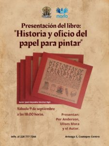 Presentación del libro Historia y oficio del papel para pintar. Manual/Memoria del proyecto «Propiedades del papel artesanal de fibras vegetales ocmo soporte de técnicas pictóricas», durante el año 2023. (validado) en Xalapa: