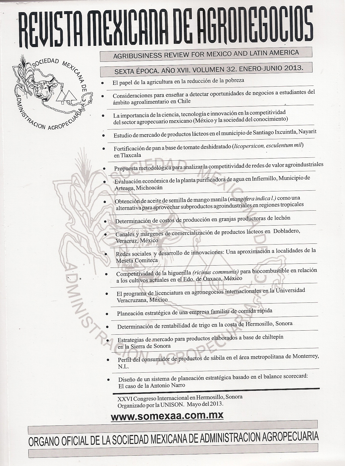 Vázquez- Selem, E., D.S. Barradas –Troncoso, J.A. Villagómez-Cortés y Á.H. Mora-Brito. 2012. El programa de licenciatura en agronegocios internacionales en la Universidad Veracruzana, México. XXV Congreso Internacional en Administración de Empresas Agropecuarias. Sociedad Mexicana de Administración Agropecuaria, A.C. 20 al 23 de mayo de 2012. Hotel Barceló, Riviera Maya, Quintana Roo, México. 2012 Vazquez-SOMEXAA