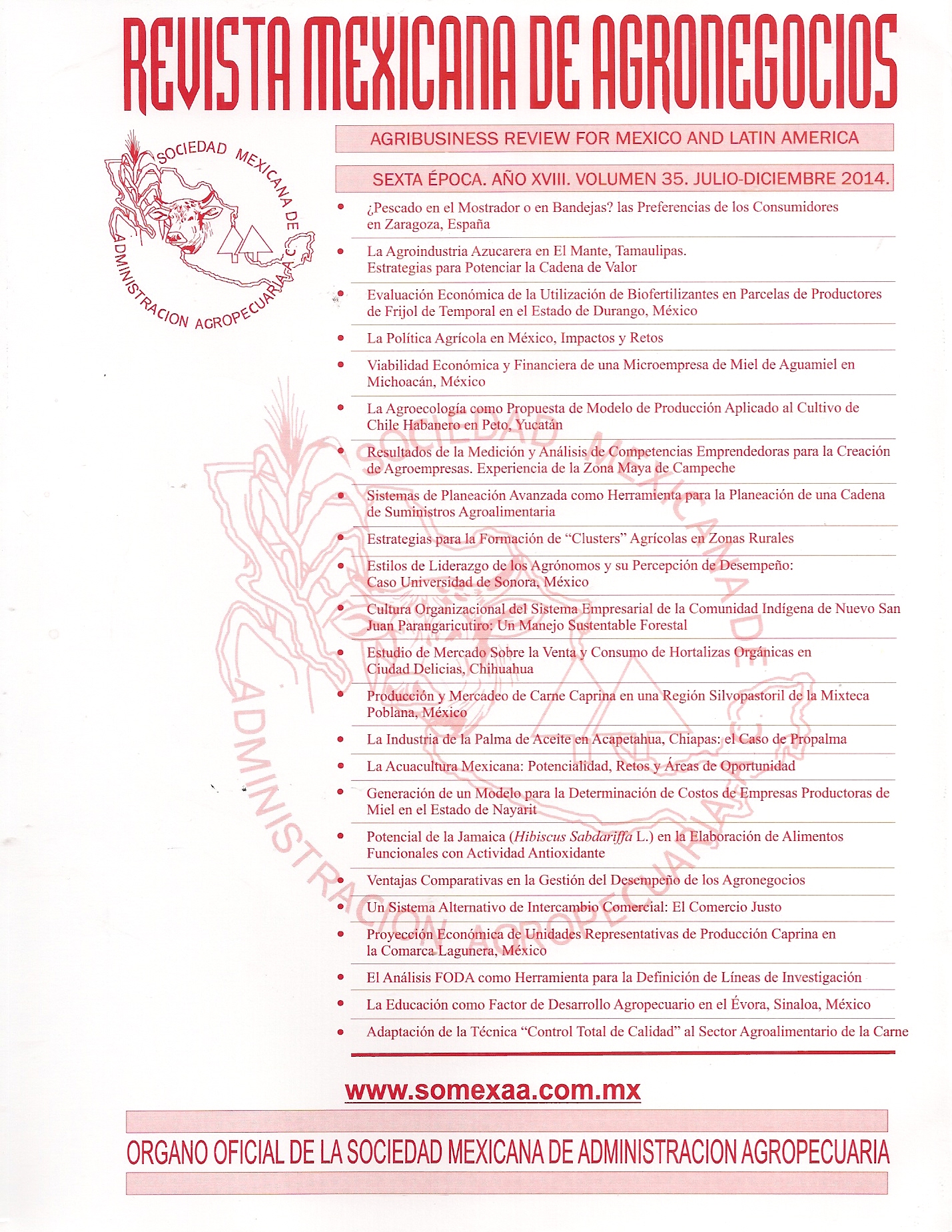 Vázquez- Selem, E., D.S. Barradas –Troncoso, J.A. Villagómez-Cortés y Á.H. Mora-Brito. 2013. El programa de licenciatura en agronegocios internacionales en la Universidad Veracruzana, México. Revista Mexicana de Agronegocios, XVII(32): 320-333. ISSN Impreso: 1405-9282. Revista Indexada por REDALyC. http://www.redalyc.org/articulo.oa?id=14125584014 http://ageconsearch.umn.edu/bitstream/143922/2/13%20V%C3%A1zquez%20S%20E%20%20FMVZ_VER.pdf