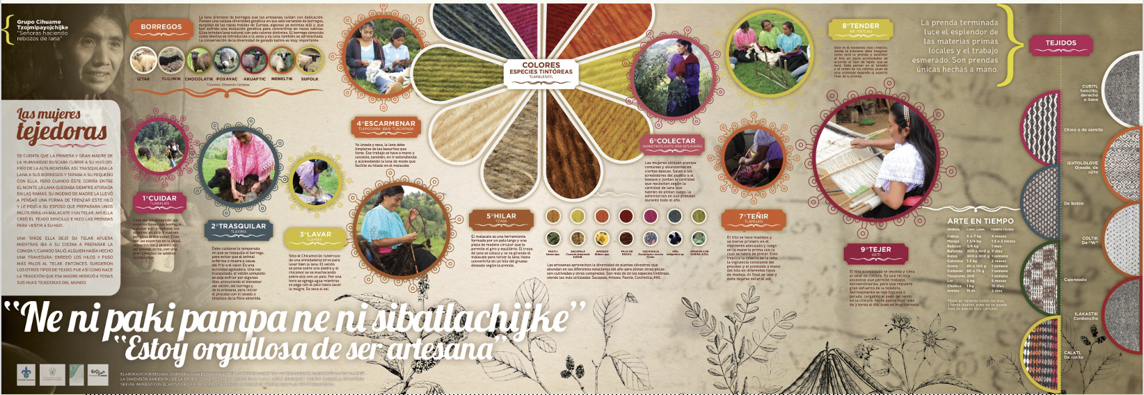 Con la finalidad de dar a conocer la importancia de los textiles de lana de la sierra de Zongolica, sobre todo el gran trabajo y creatividad de las mujeres que elaboran estos textiles, la Mtra Belinda Contreras Jaimes, egresada de la Maestría en Ecología Tropical realizó un número de infografías relatando de manera visual y escrita el proceso de elaboración de los textiles de la sierra de Zongolica.