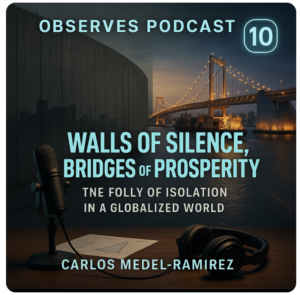 En este episodio, exploramos el fascinante preimpreso del artículo «Walls of Silence, Bridges of Prosperity: The Folly of Isolation in a Globalized World», escrito por Carlos Medel-Ramírez de la Universidad Veracruzana. A través de una mirada crítica y un modelo matemático sólido, el autor desmantela la idea de que el aislamiento —ya sea con muros físicos o barreras económicas— pueda traer beneficios sostenibles. Por el contrario, demuestra cómo el bienestar económico disminuye conforme aumenta el aislamiento.