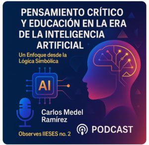 En esta sesión se presenta el documento «Pensamiento Crítico y Educación en la Era de la Inteligencia Artificial: Un Enfoque desde la Lógica Simbólica», analiza el impacto de la inteligencia artificial (IA) en la educación superior y su relación con el pensamiento crítico. A través de modelos de lógica simbólica, el autor evalúa si la IA fortalece o debilita la autonomía cognitiva, identificando riesgos como sesgos algorítmicos y dependencia tecnológica. Se introduce un *Modelo de Red Inferencial de Lógica Simbólica* para estructurar las oportunidades y riesgos de la IA en la educación, destacando aspectos como la personalización del aprendizaje, la retroalimentación inmediata y la evaluación de la eficacia educativa. A nivel formal, se presentan inferencias lógicas que modelan el impacto de la IA en la formación del pensamiento crítico. Finalmente, se propone un enfoque equilibrado para aprovechar los beneficios de la IA sin comprometer la capacidad humana de reflexión y cuestionamiento.