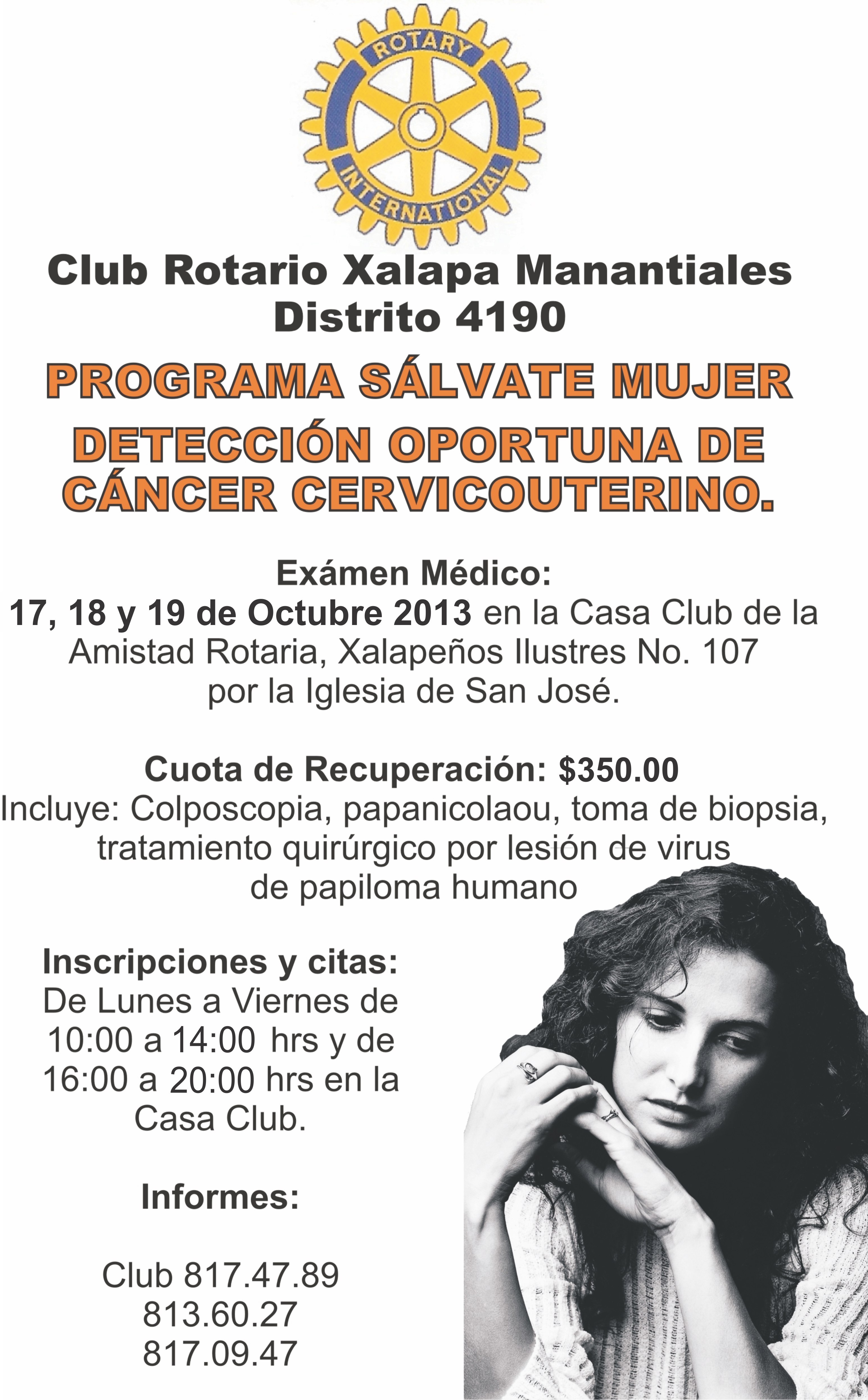 Campaña del Diagnóstico de Cáncer Cérvico uterino, tiene un costo de $350, porque incluye desde el diagnóstico hasta el tratamiento para quienes resulten afectadas.