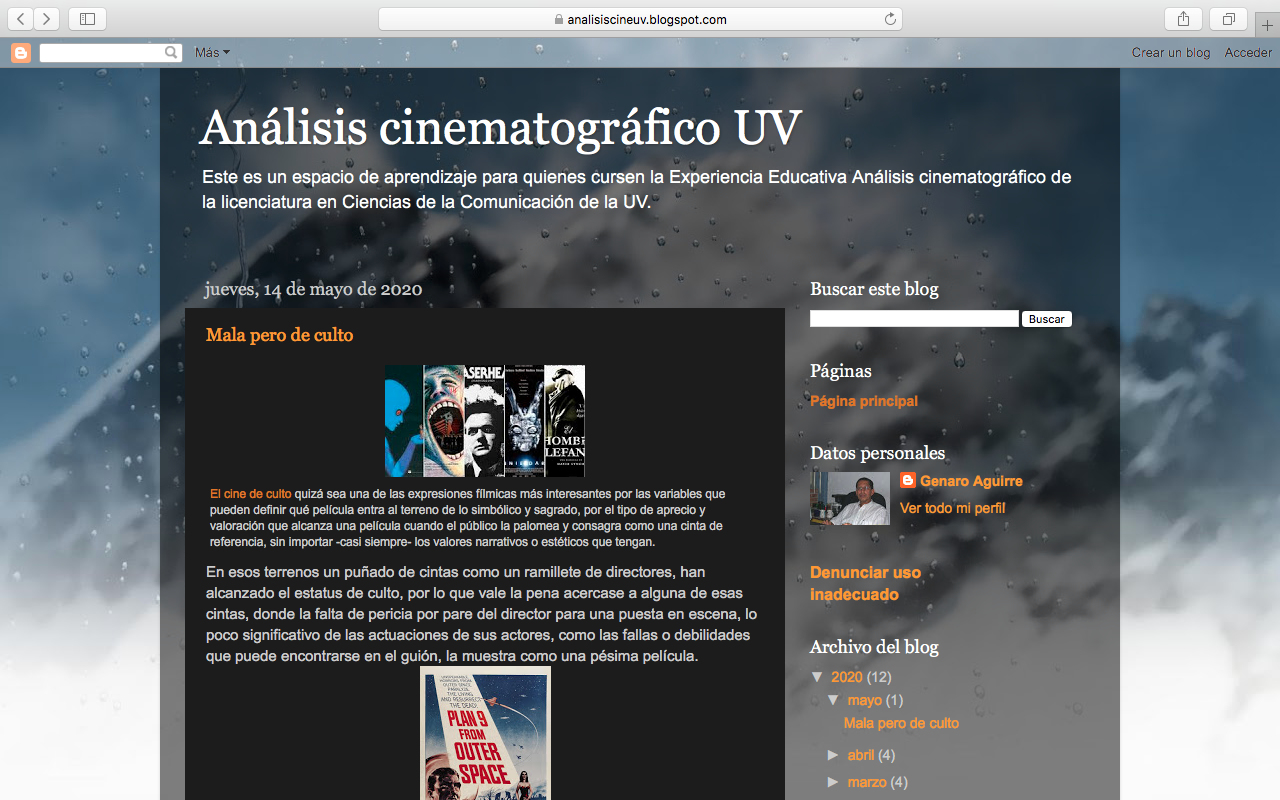 De tal suerte que planear, diseñar e implementar una actividad escolar para la enseñanza del análisis en cine, ha permitido contribuir no sólo al aprendizaje entre los estudiantes, sino a generar una experiencia estética y académica por igual. Por lo menos es lo que se logra reconocer en la calidad de los trabajos que entregan los estudiantes, sea a través de sus participaciones en el blog que diseñé al inicio del curso, como a través de sus podcast, el cartel, la infografía que hasta hoy han entregado, sin dejar de señalar la forma en que han hecho visibles la recuperación de información en lecturas que le he compartido a través del foro o en la sesión virtual para conversar que podemos hacer en Zoom.